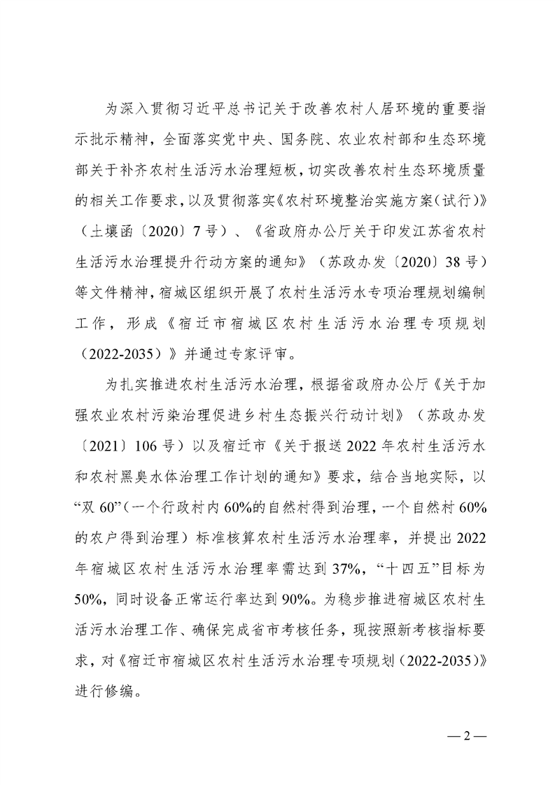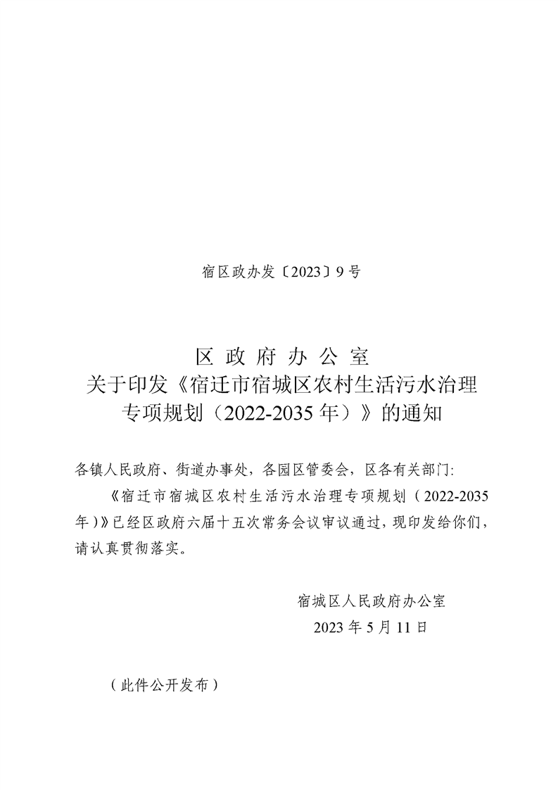 區政府辦公室關于印發《宿遷市宿城區農村生活污水治理專項規劃(2022-2035年)》的通知