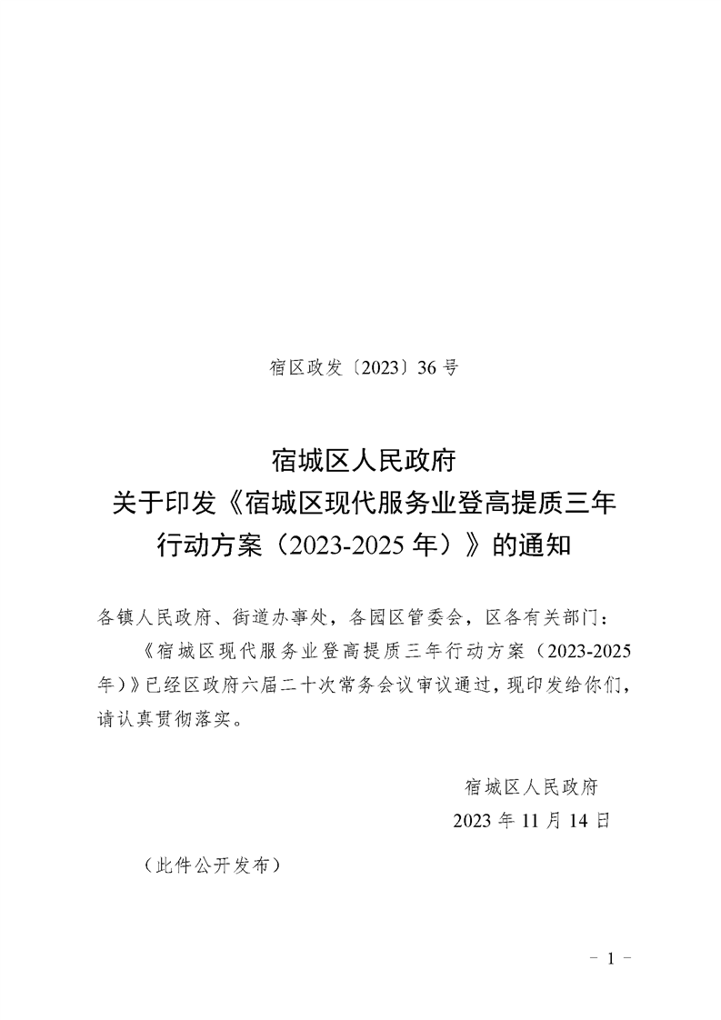 宿城區人民政府關于印發《宿城區現代服務業登高提質三年行動方案(2023-2025年)》的通知