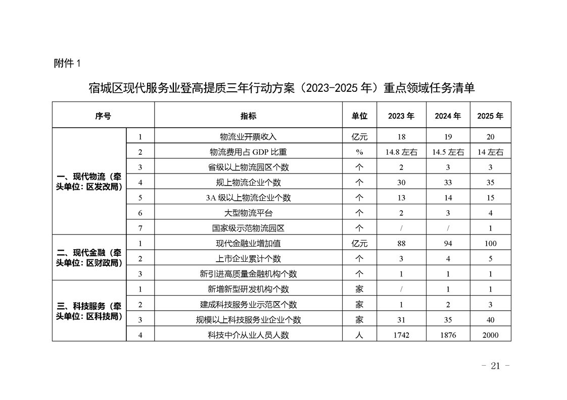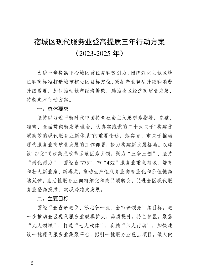 宿城區人民政府關于印發《宿城區現代服務業登高提質三年行動方案(2023-2025年)》的通知.doc