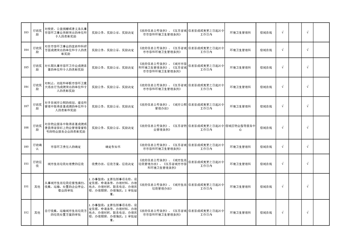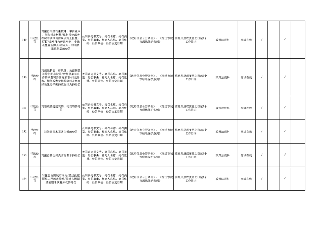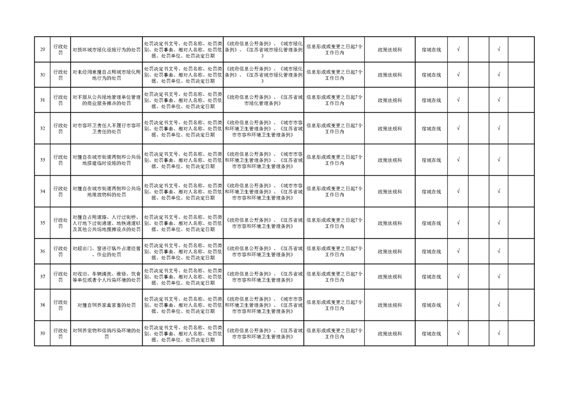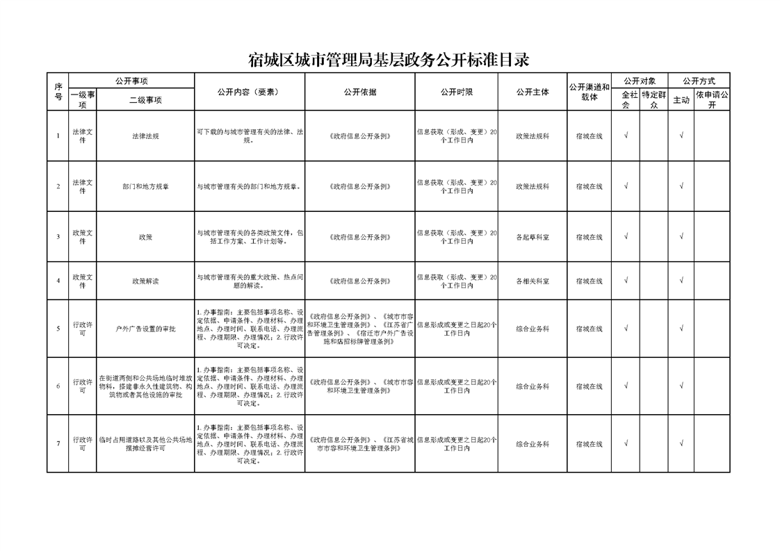 宿城區城市管理局基層政務公開標準目錄(2025版)