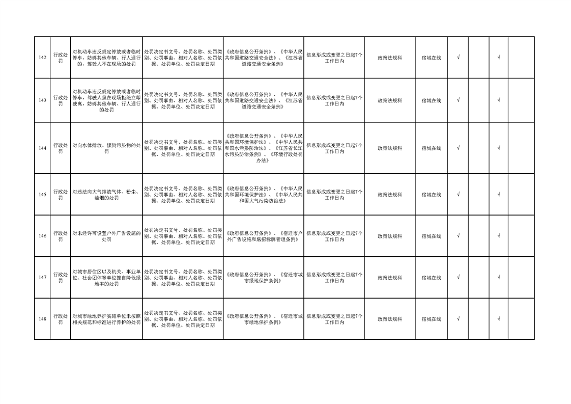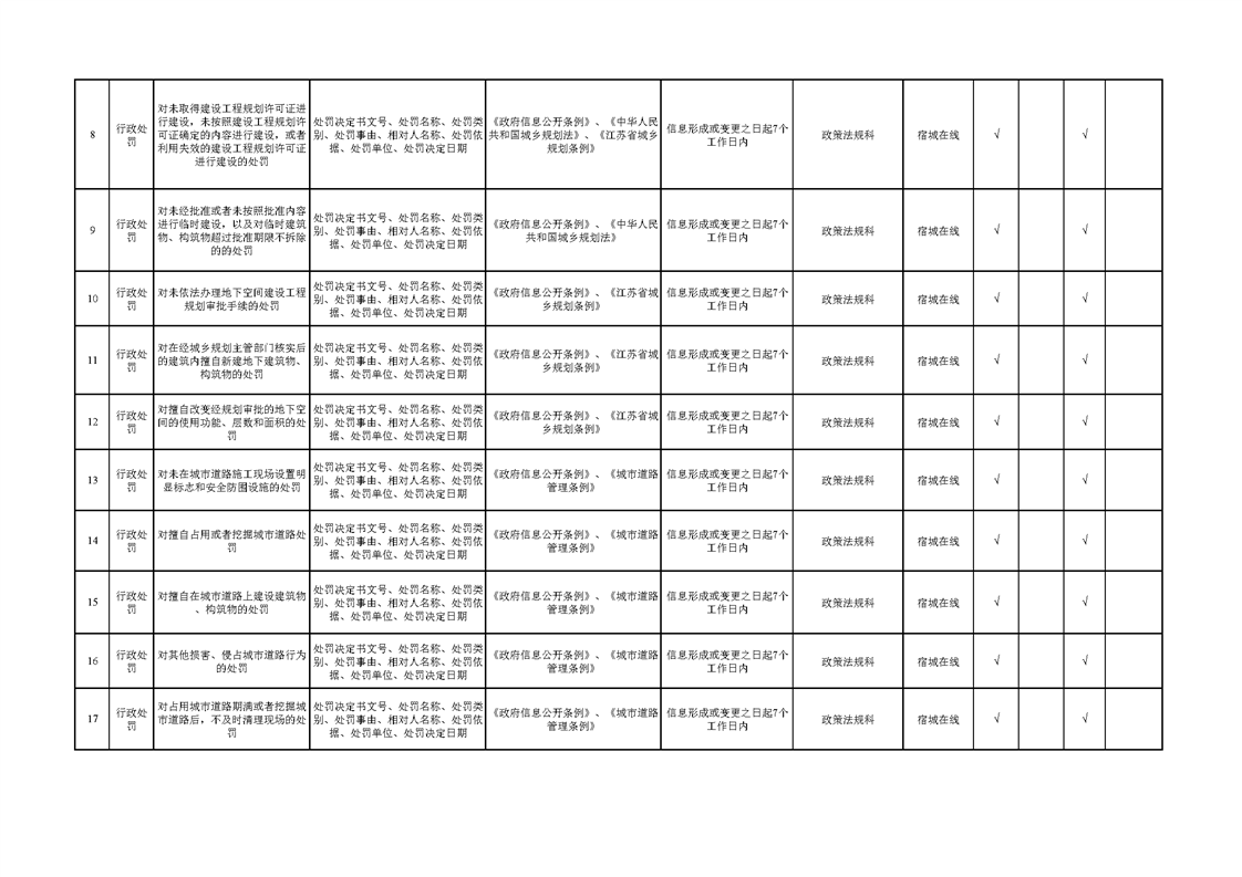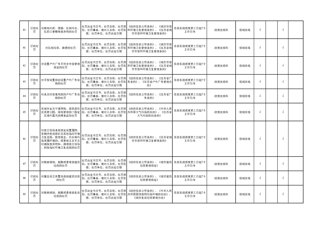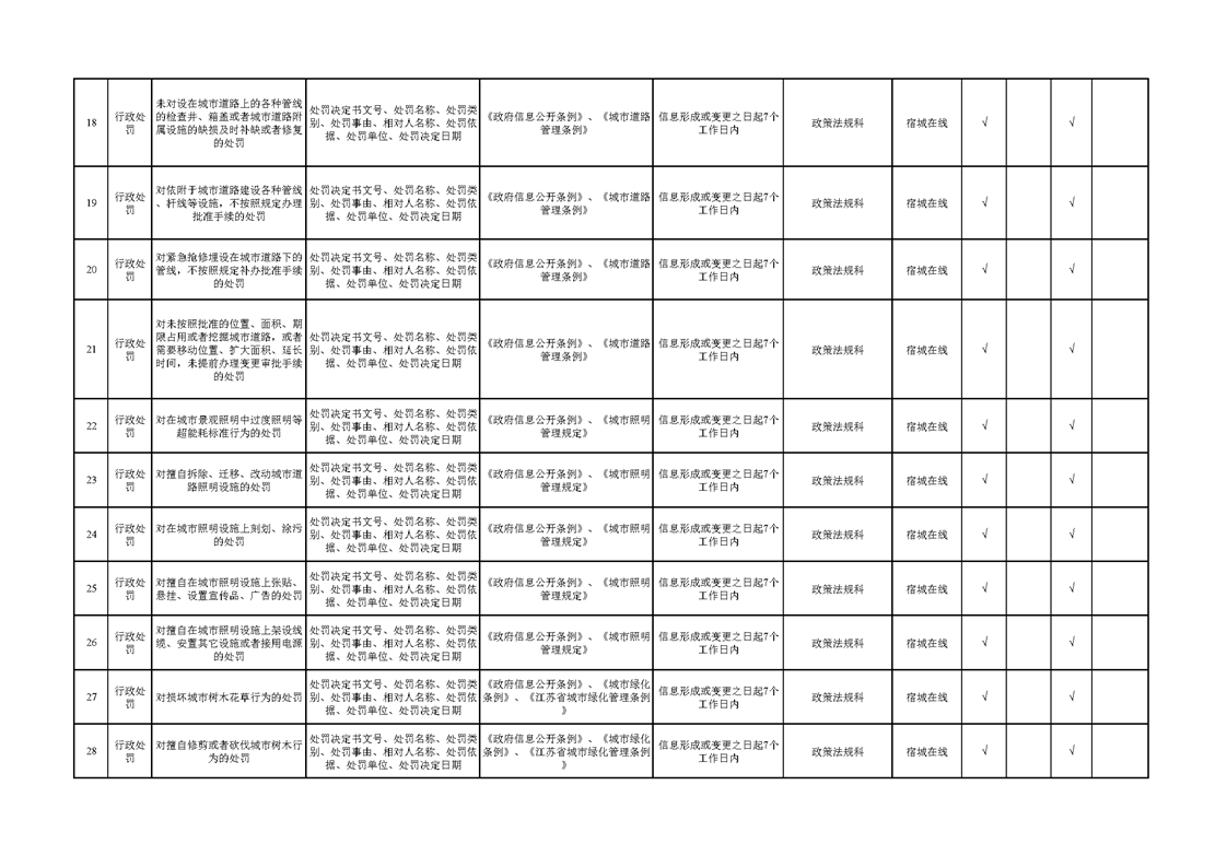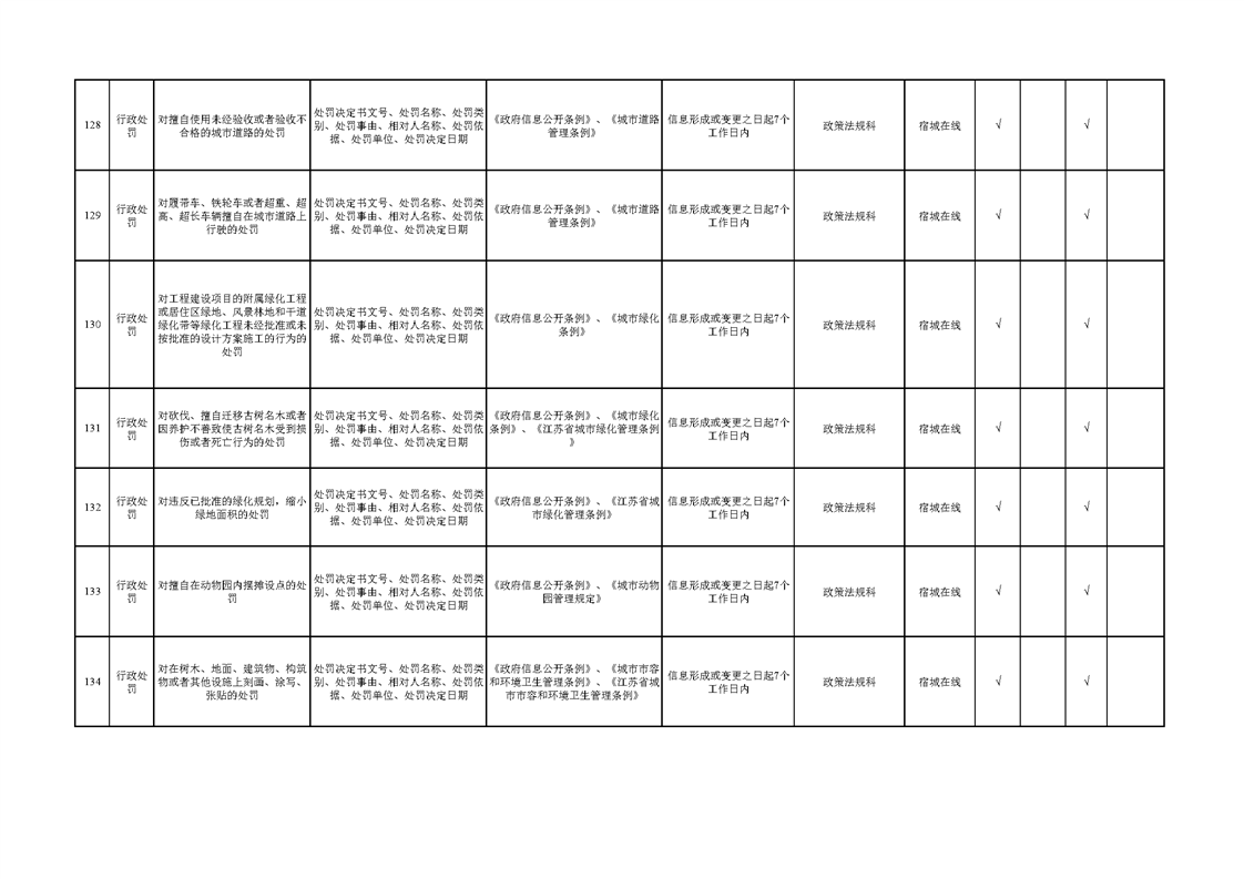 宿城區城市管理局基層政務公開標準目錄(2025版)