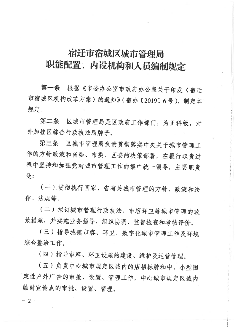 宿城區(qū)城市管理局職能配置、內(nèi)設(shè)機(jī)構(gòu)和人員編制規(guī)定