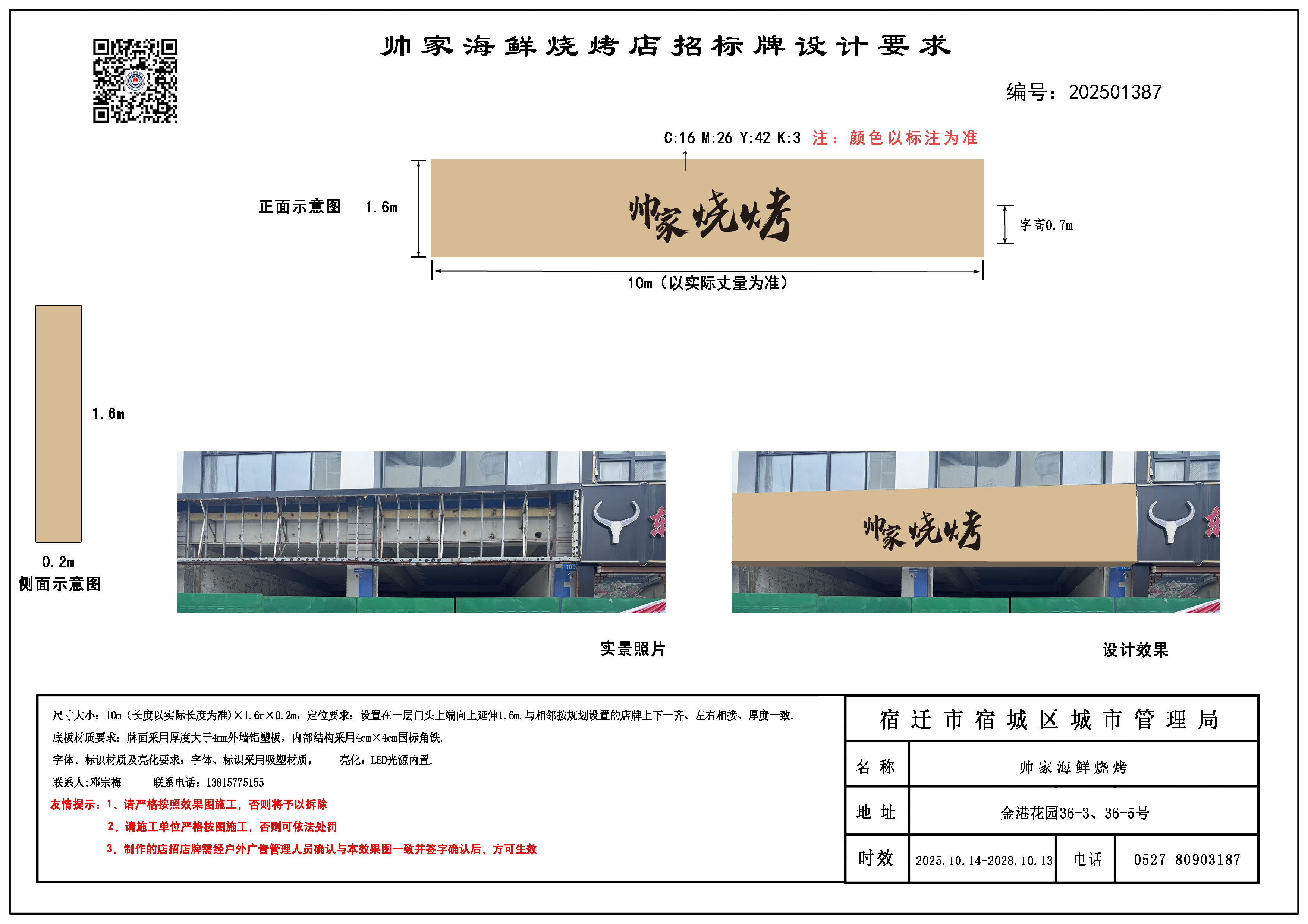 宿城區帥家海鮮燒烤店店招標牌的備案