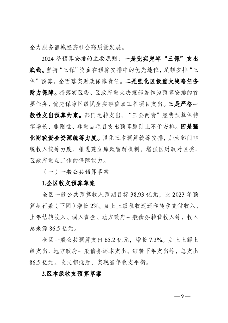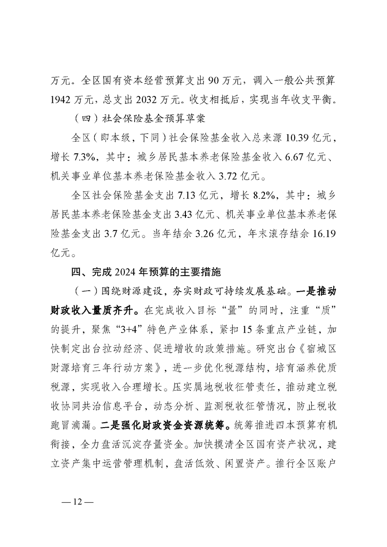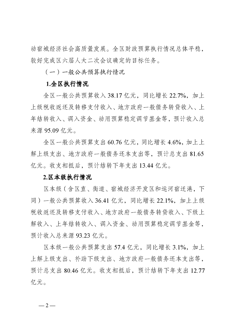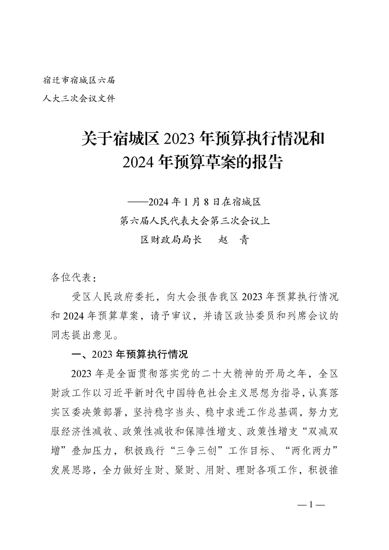 【預決算信息】關(guān)于宿城區(qū)2023年預算執(zhí)行情況和2024年預算草案的報告