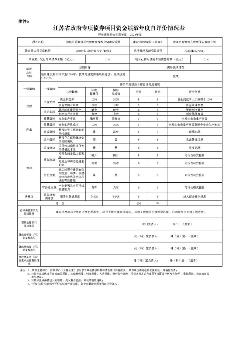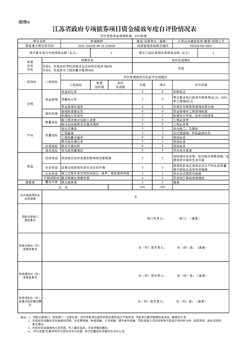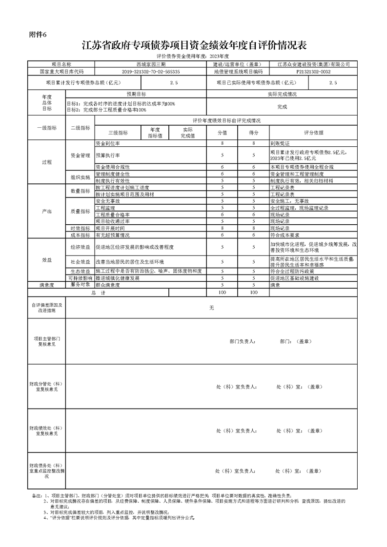 【債務信息】2023年度江蘇省政府專項債券項目資金績效自評價