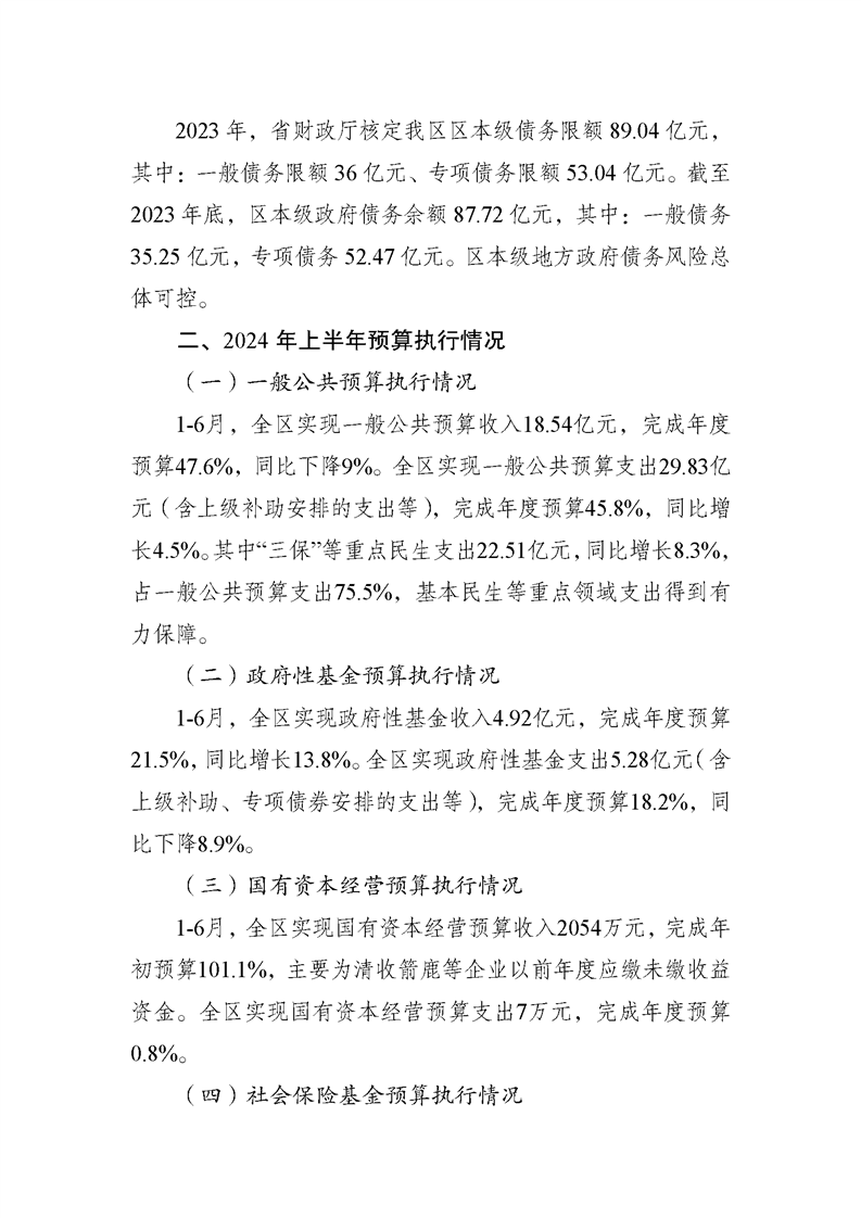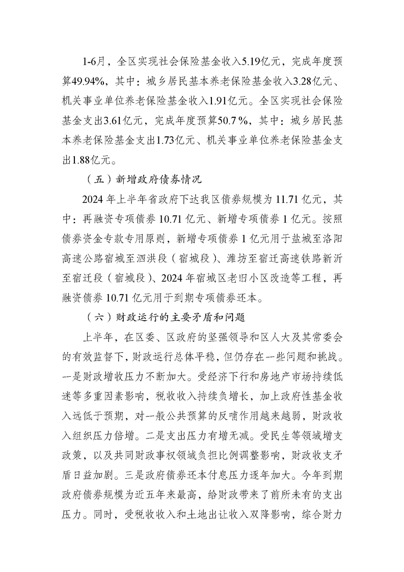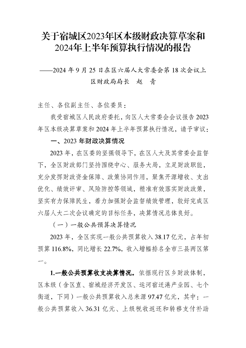 關于宿城區2023年區本級財政決算草案和2024年上半年預算執行情況的報告