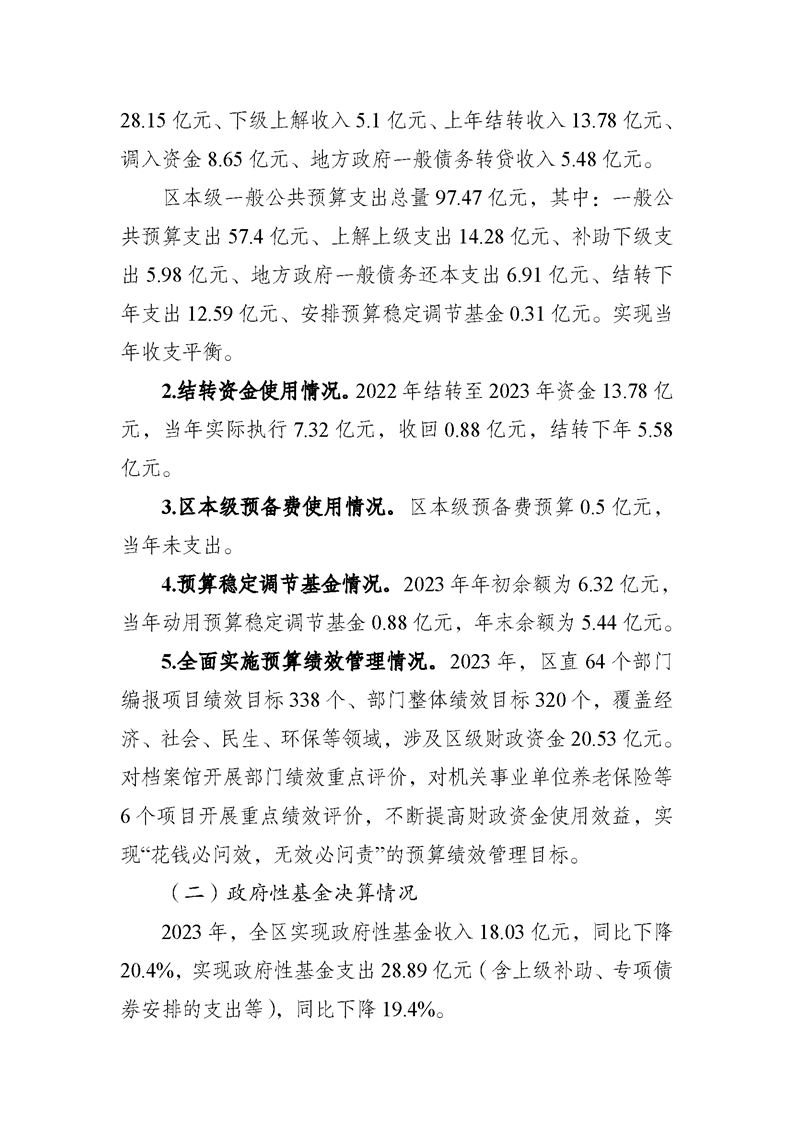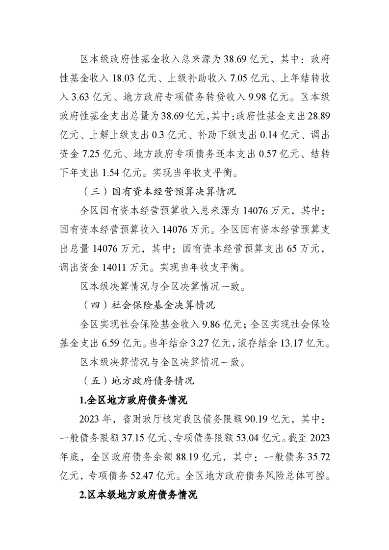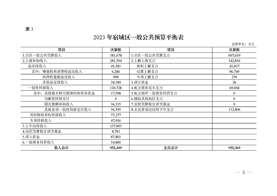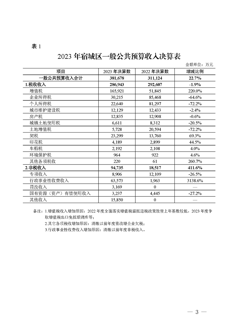關于宿城區2023年區本級財政決算草案和2024年上半年預算執行情況的報告
