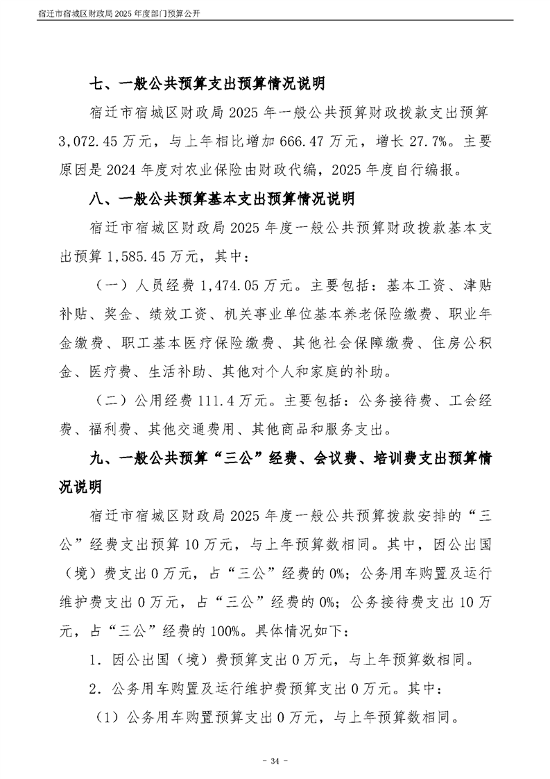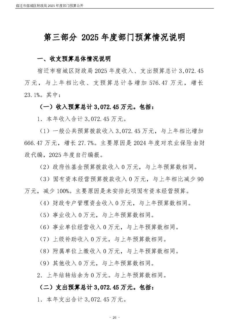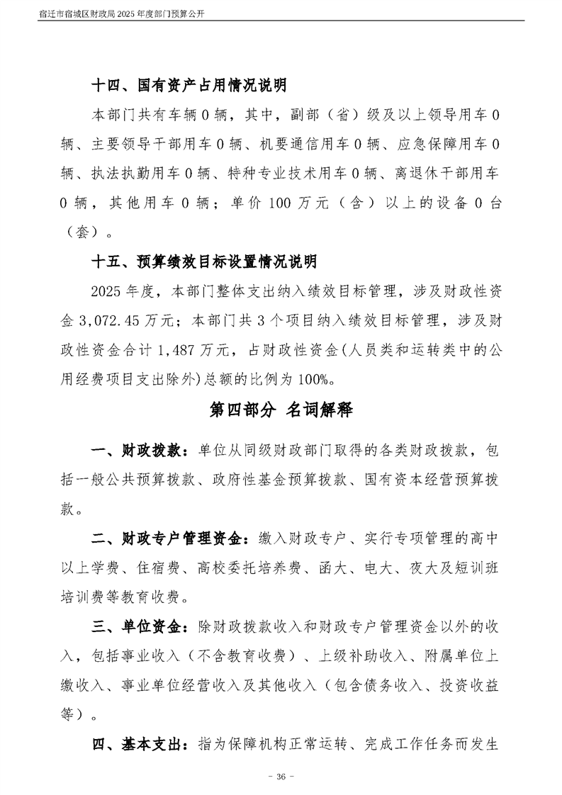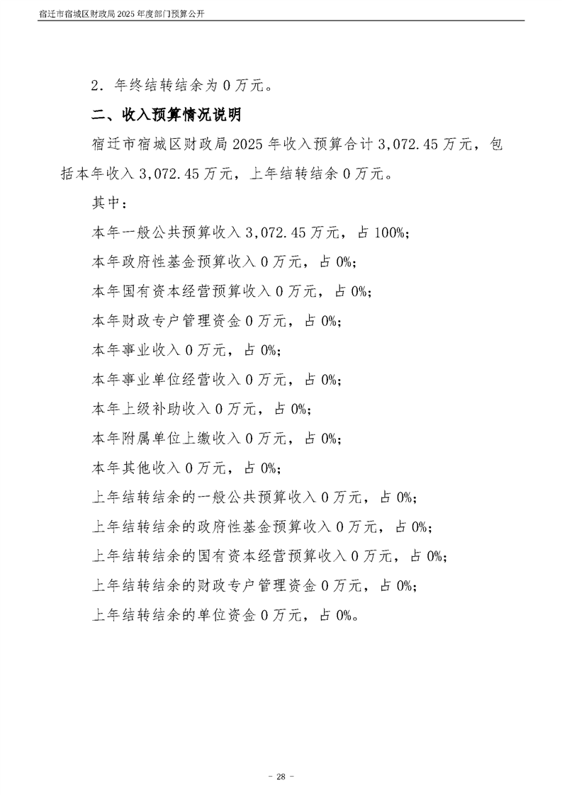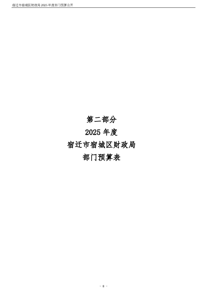 2025年度宿遷市宿城區財政局部門預算公開