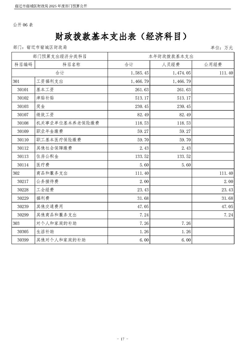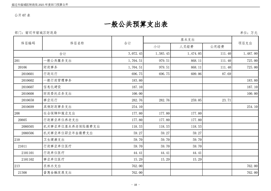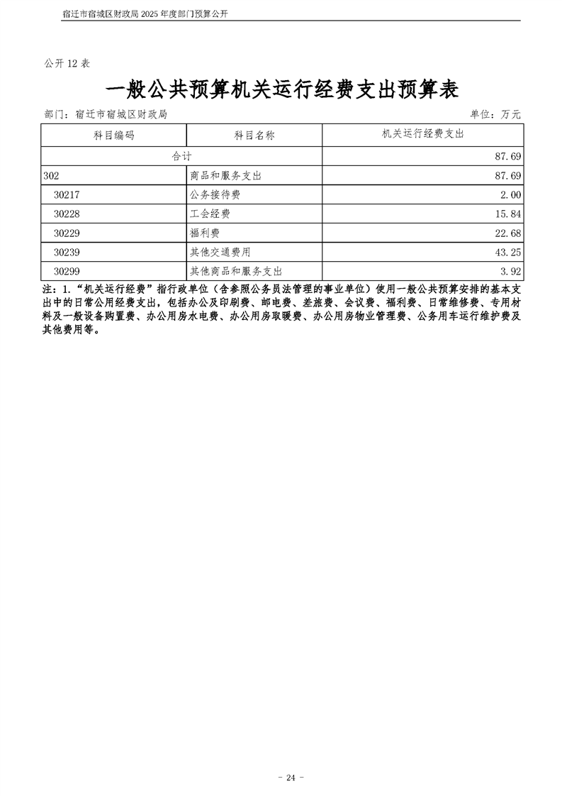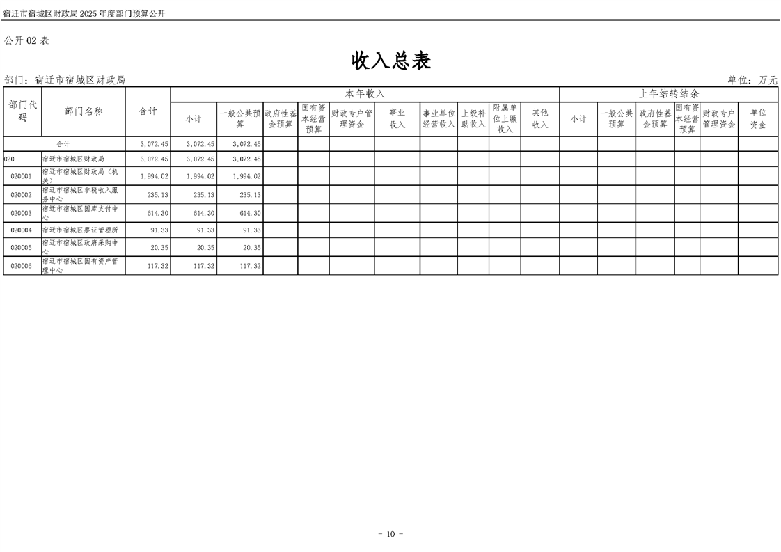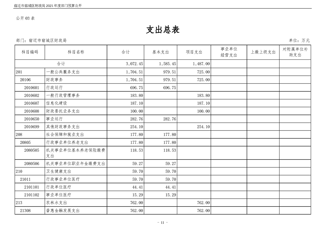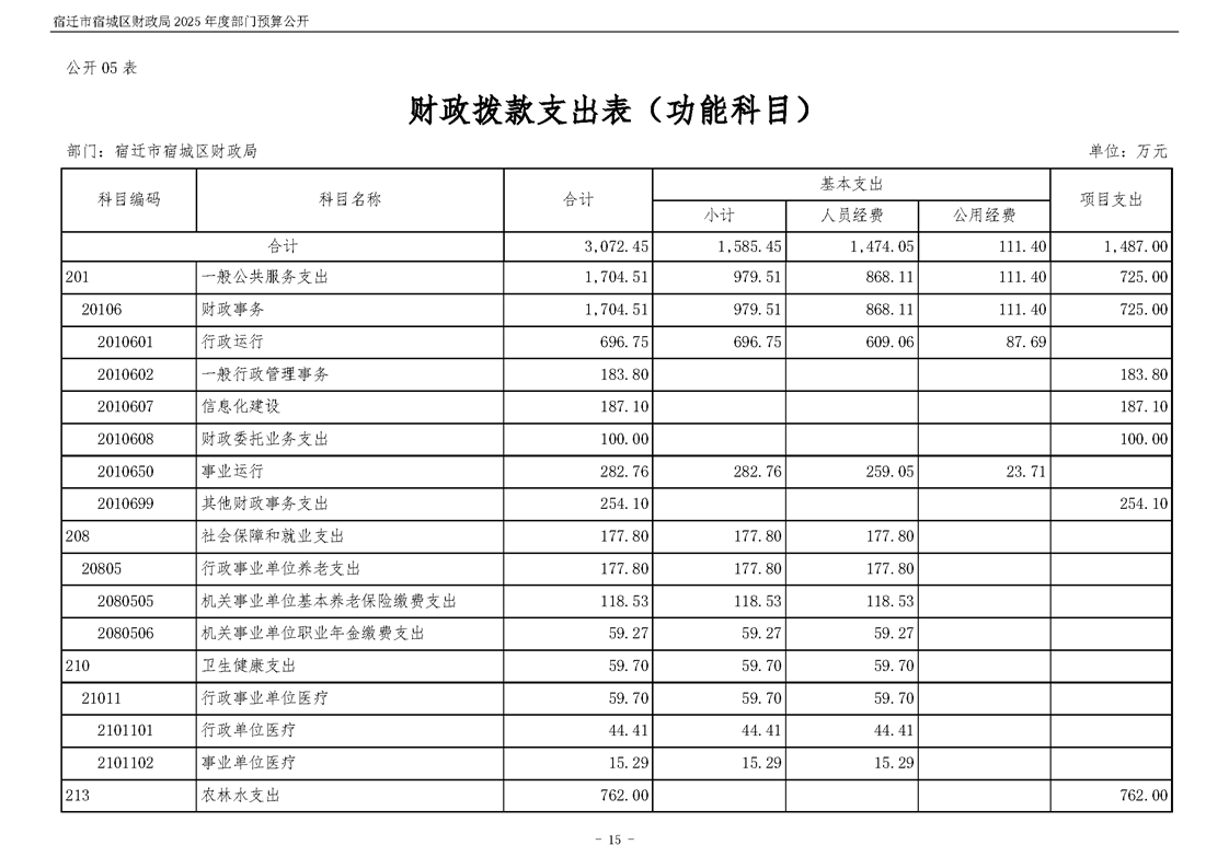 2025年度宿遷市宿城區財政局部門預算公開