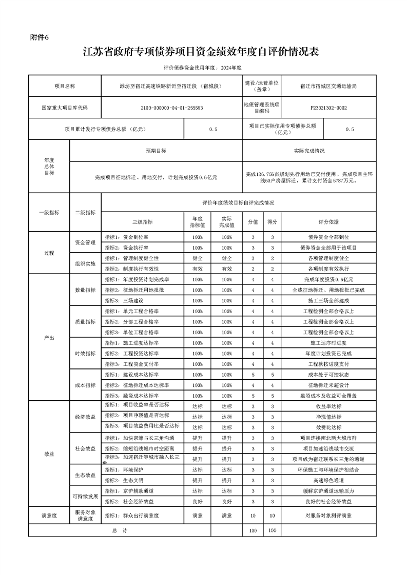 【債務信息】江蘇省政府專項債券項目資金績效年度自評價情況表
