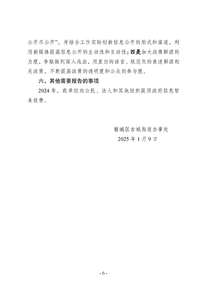 宿城區古城街道辦事處2024年政府信息公開工作年度報告
