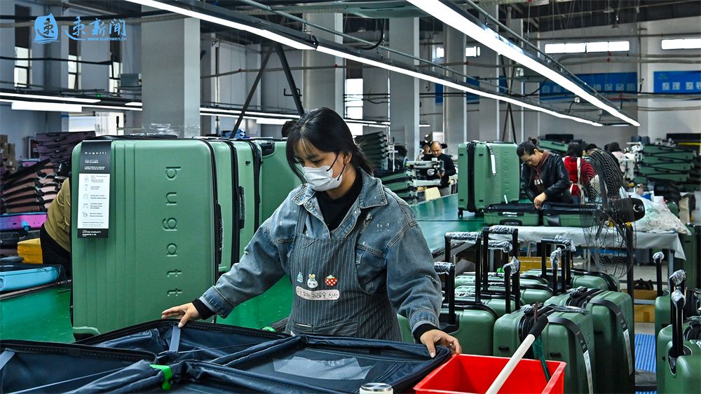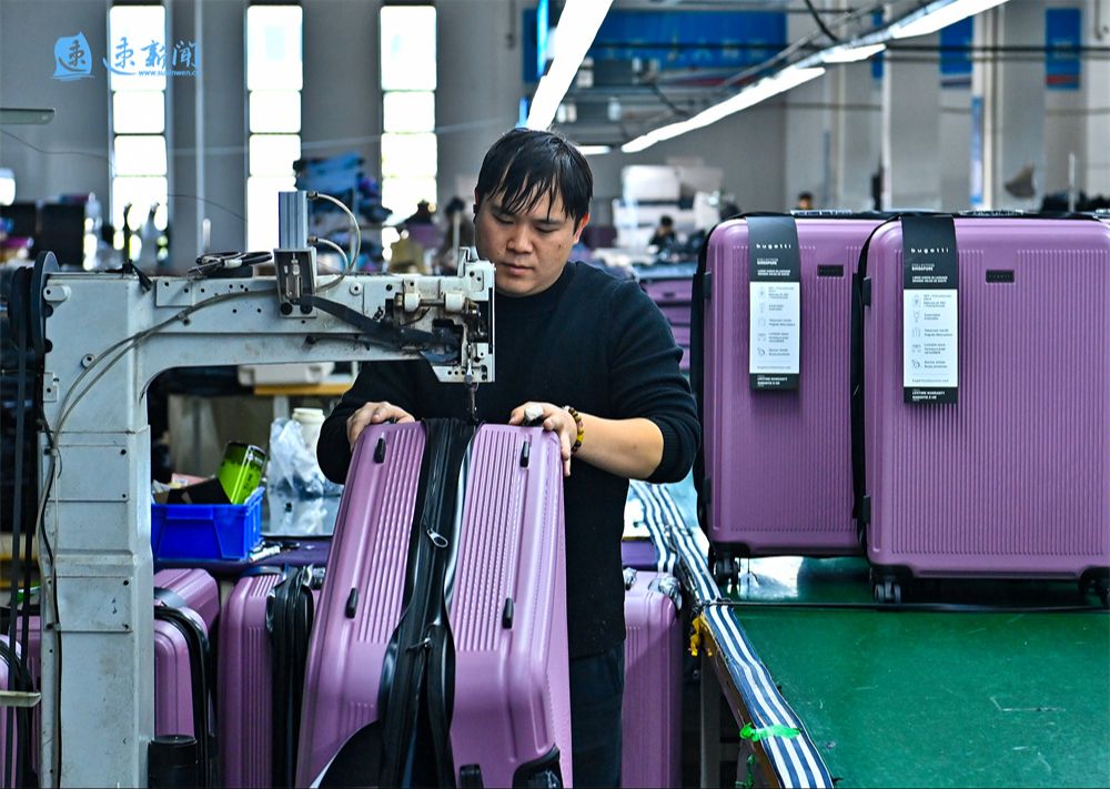 10月23日,宿城區(qū)耿車鎮(zhèn)綠色家居產(chǎn)業(yè)園內(nèi)一派繁忙,江蘇遷旅智能科技有限公司的工人們正加緊生產(chǎn)拉桿箱。