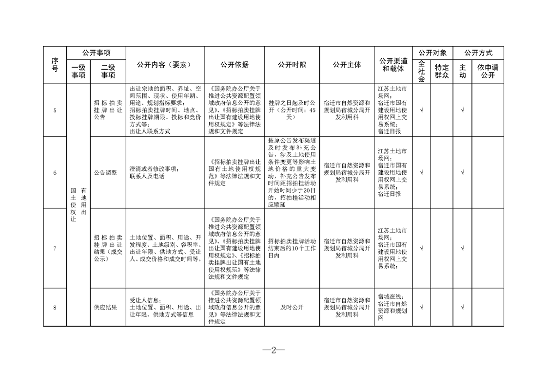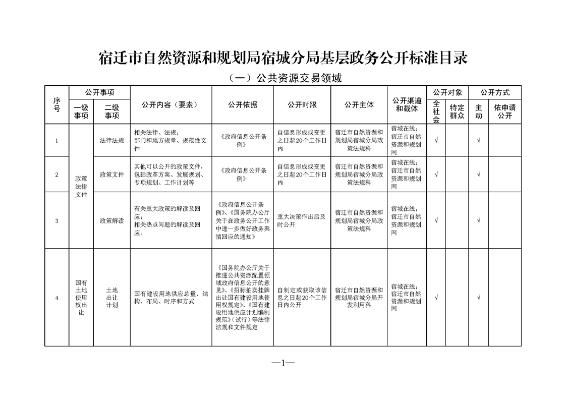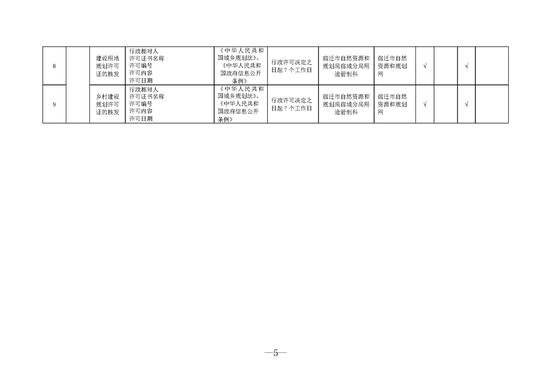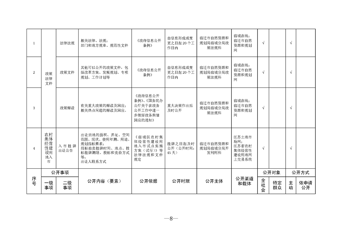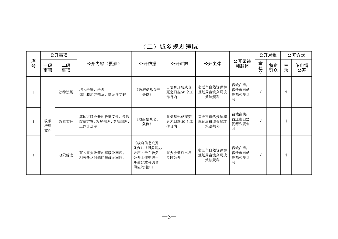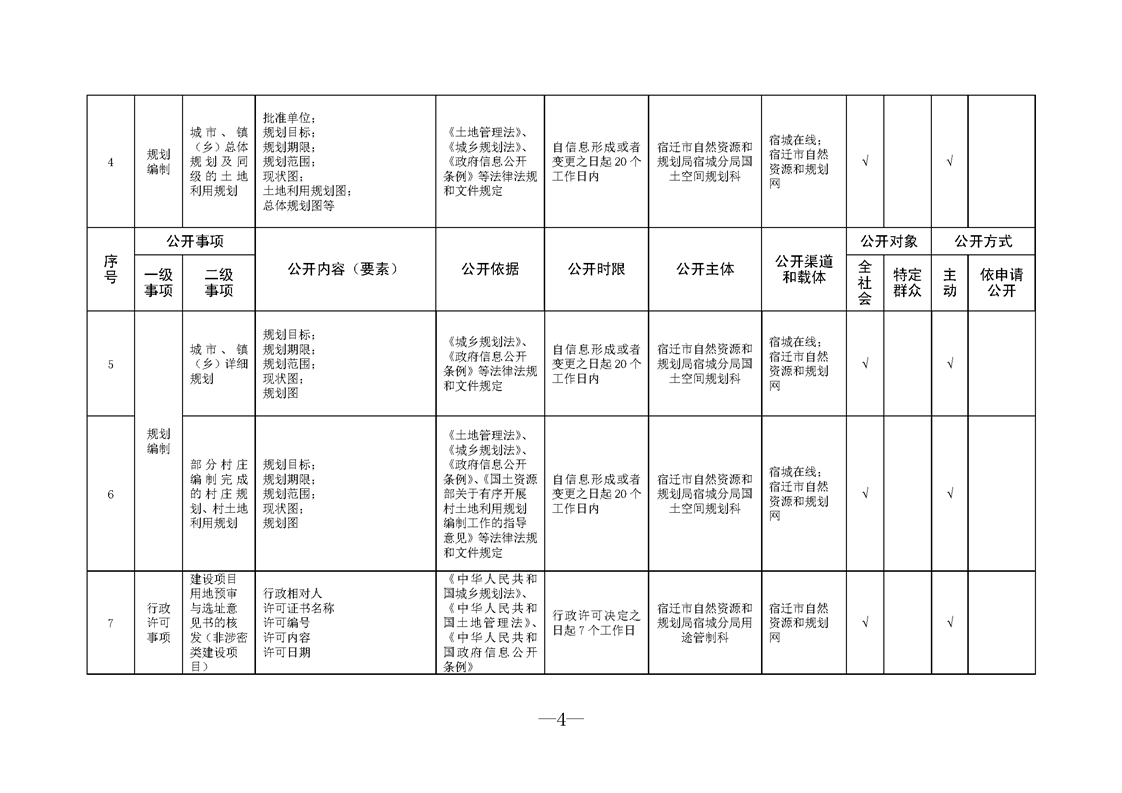 宿遷市自然資源和規劃局宿城分局基層政務公開標準目錄(2023版)