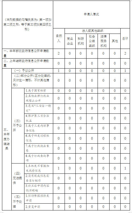 (二)規范依申請辦理。2024年度,我局共受理信息公開申請2件,已經回復完畢。2024年度我局無“不予公開”的政府信息。因政府信息公開工作被申請行政復議數量0件。因政府信息公開工作被申請行政訴訟數量0件。因政府信息公開工作被舉報投訴數量0件。