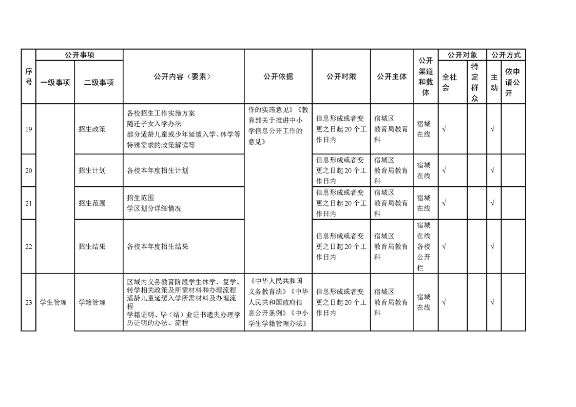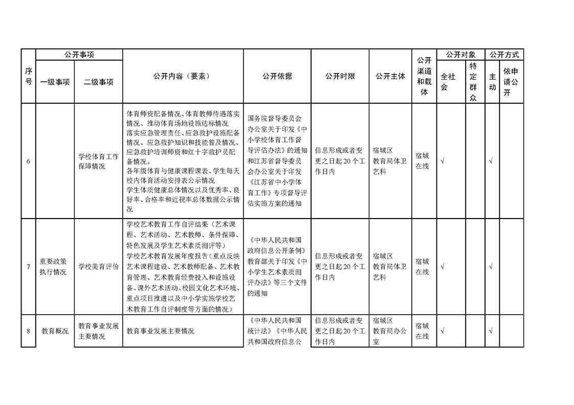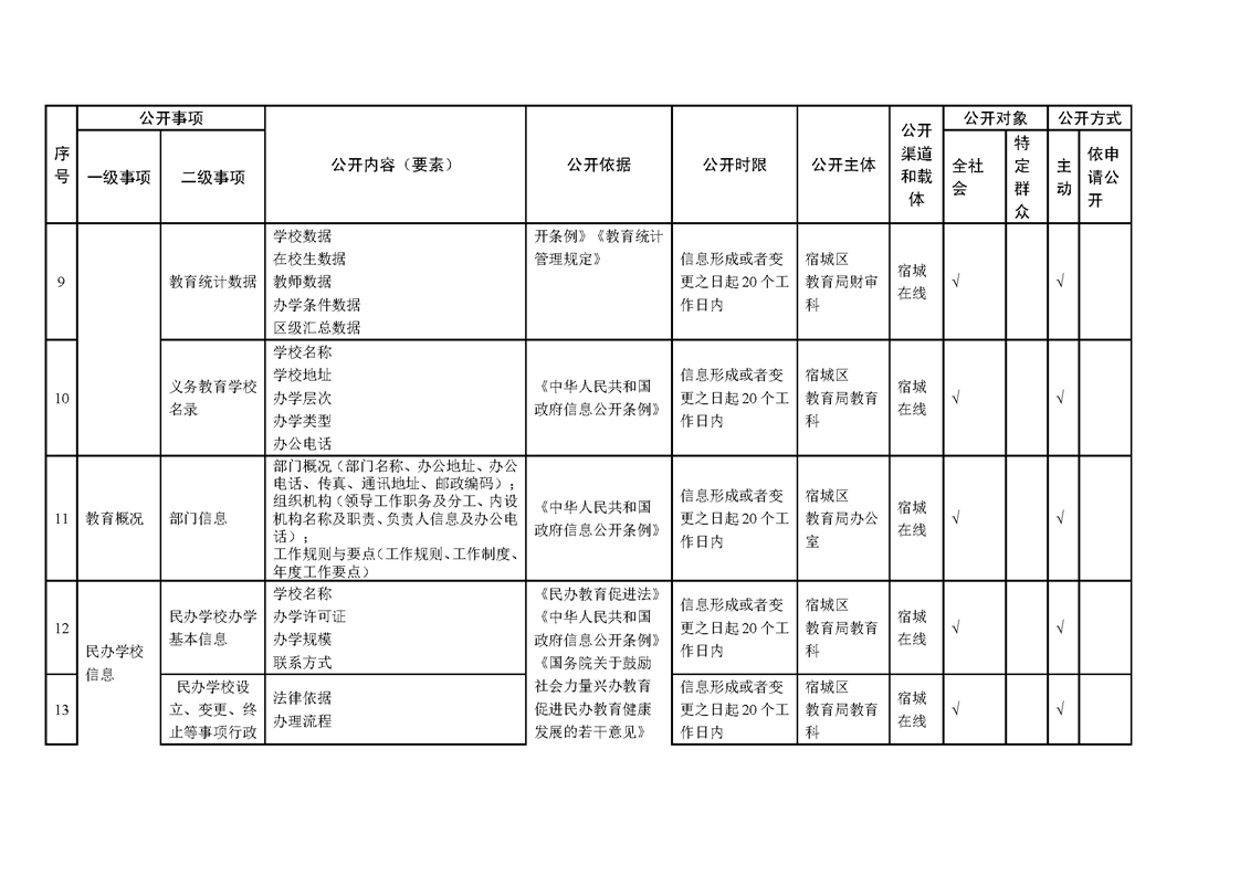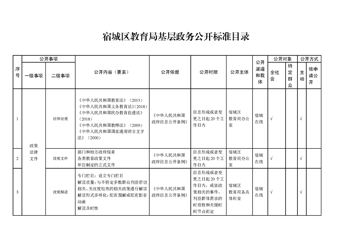 宿城區教育局基層政務公開標準目錄(2025版)
