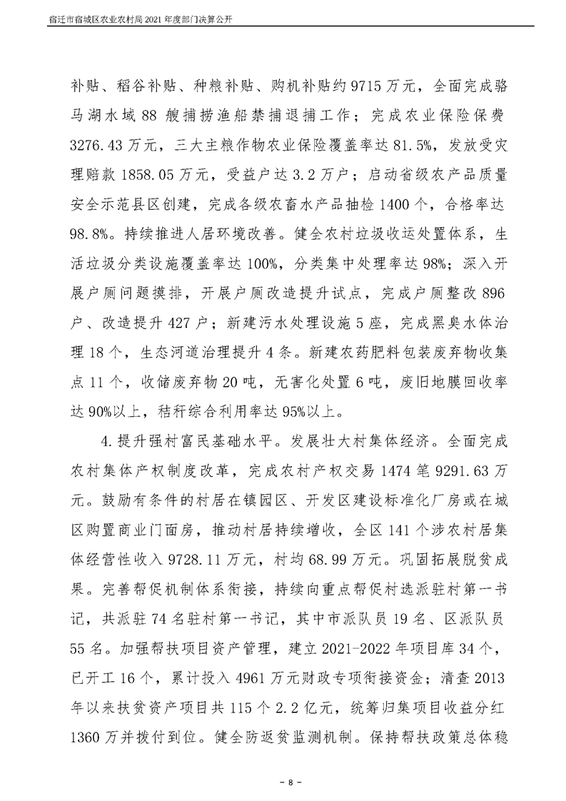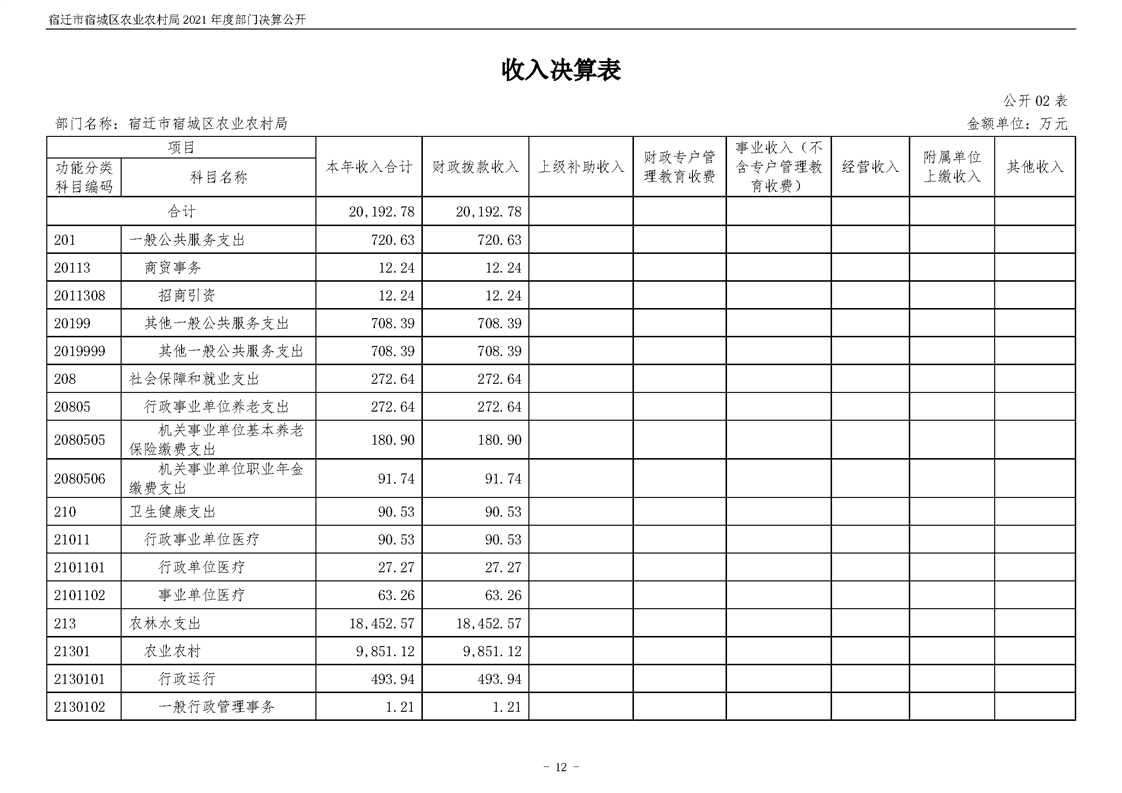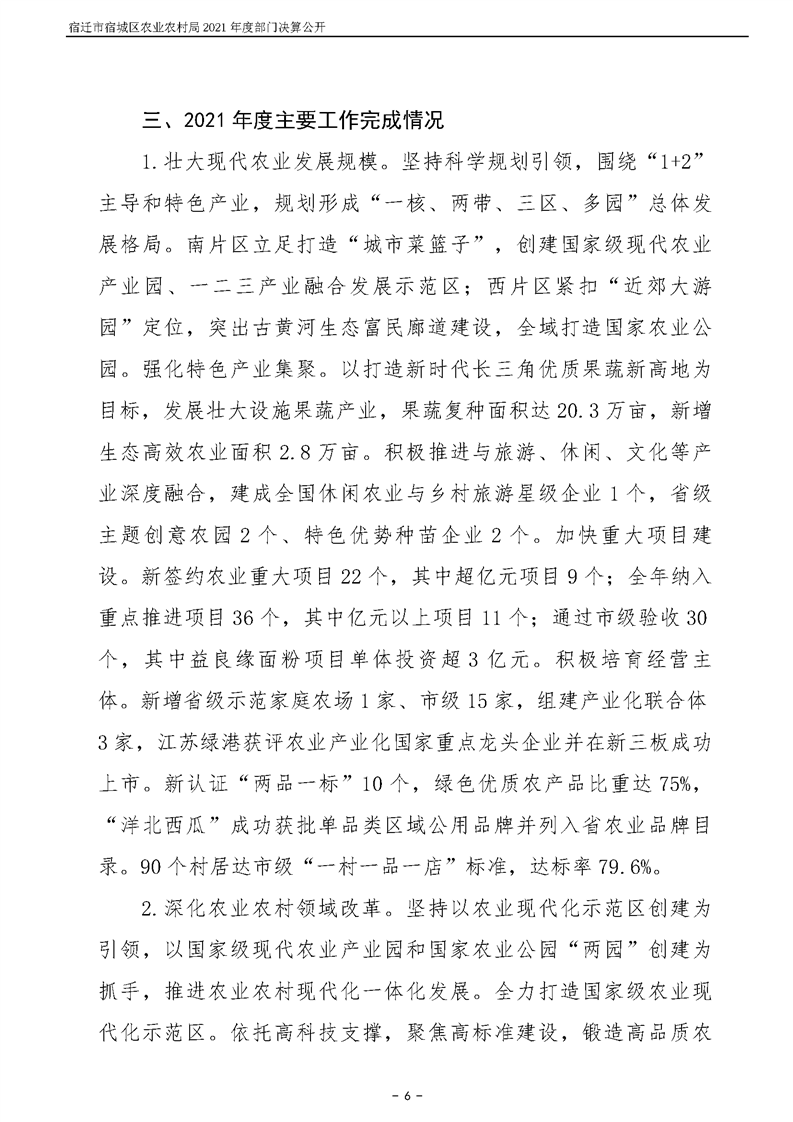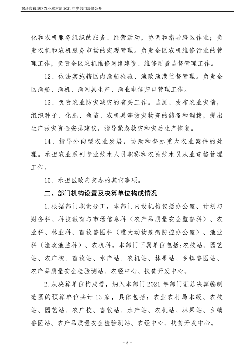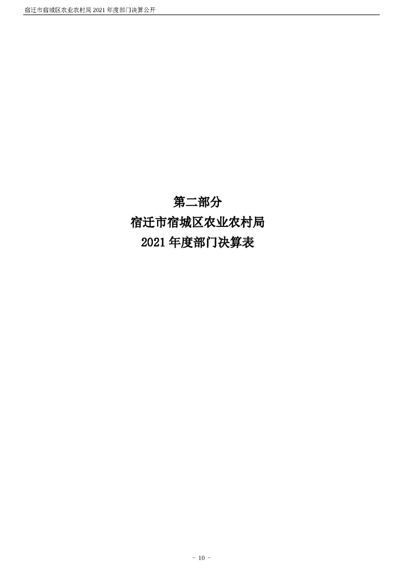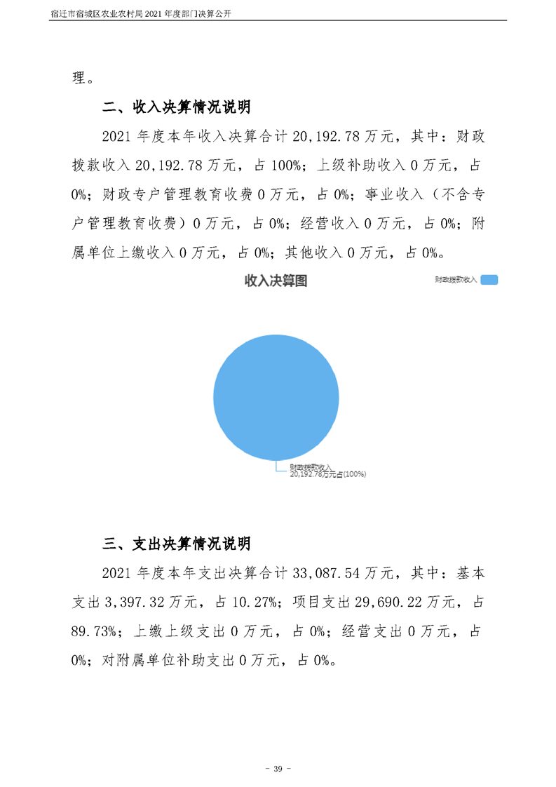 宿遷市宿城區農業農村局2021年度部門決算公開