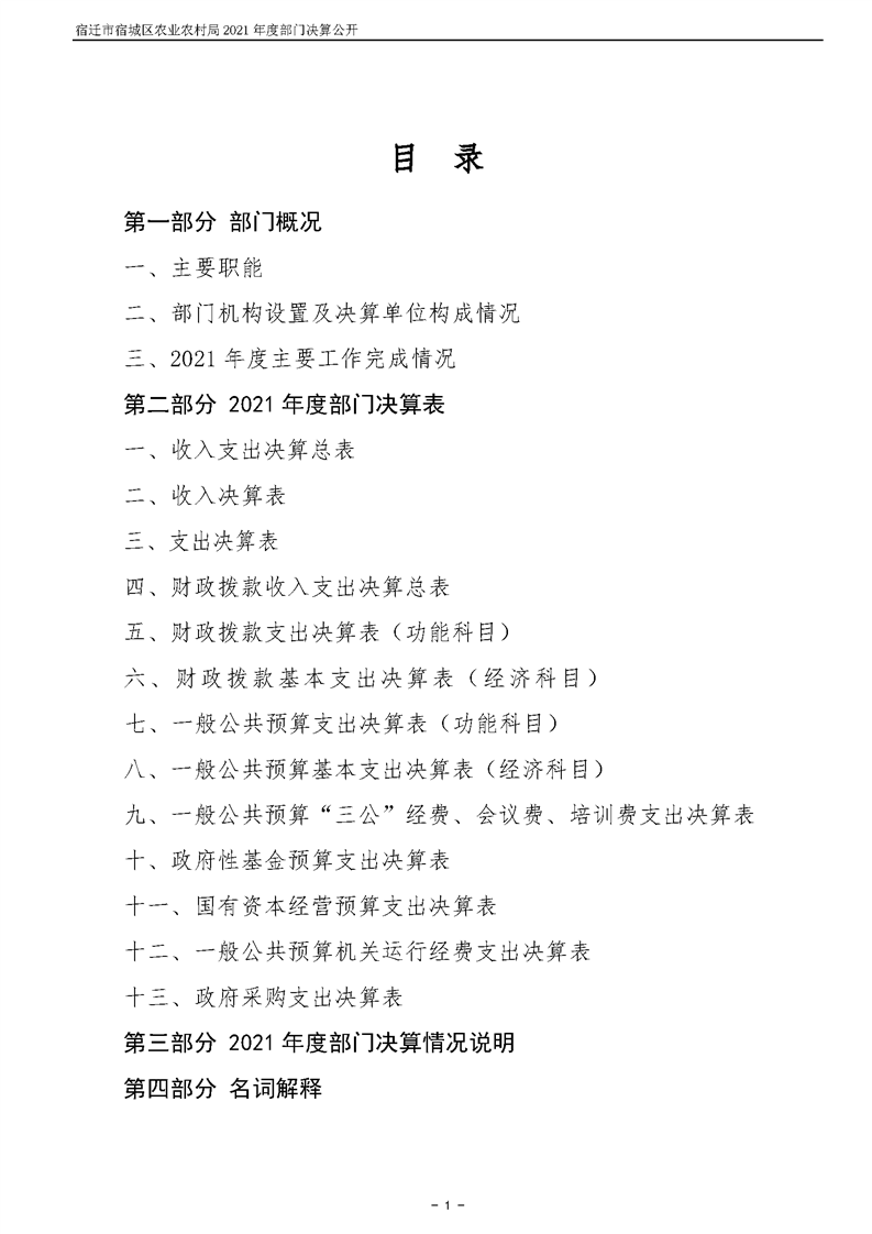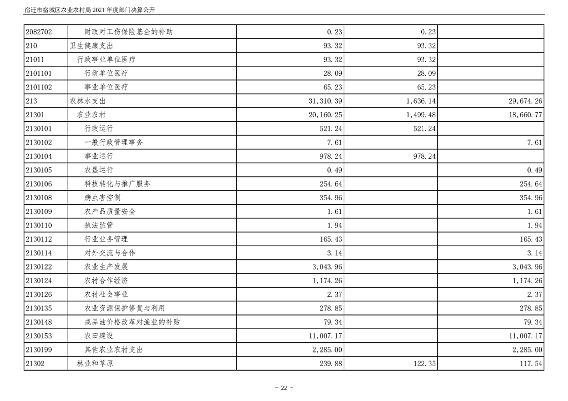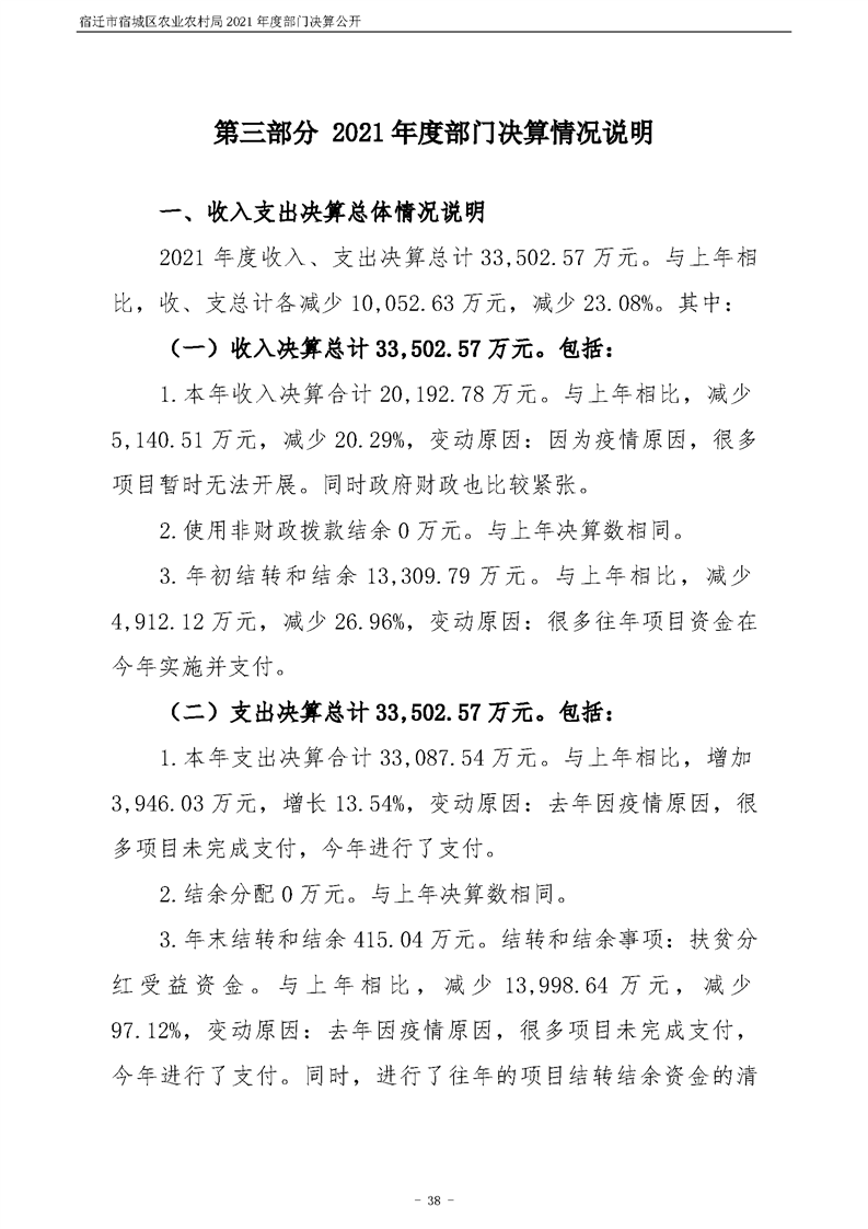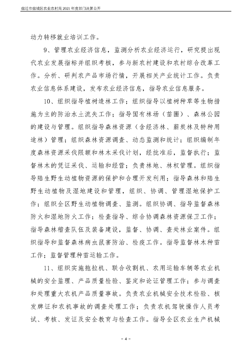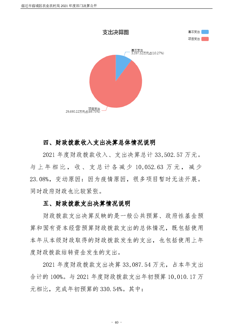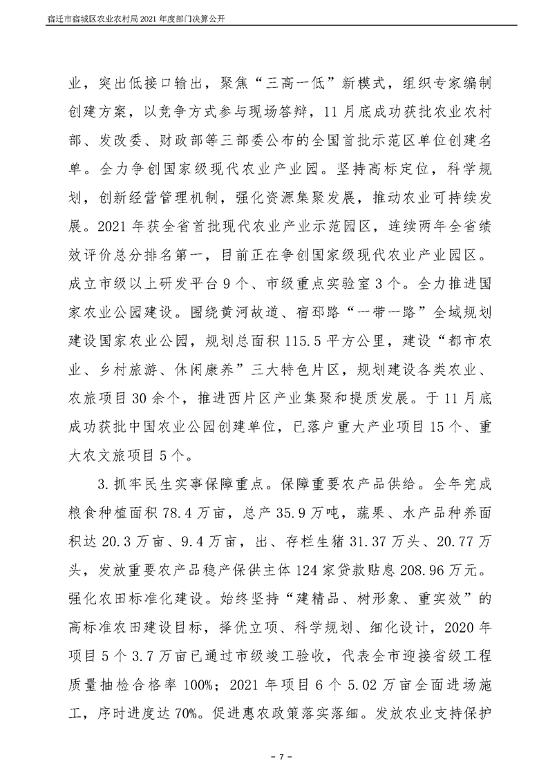 宿遷市宿城區農業農村局2021年度部門決算公開
