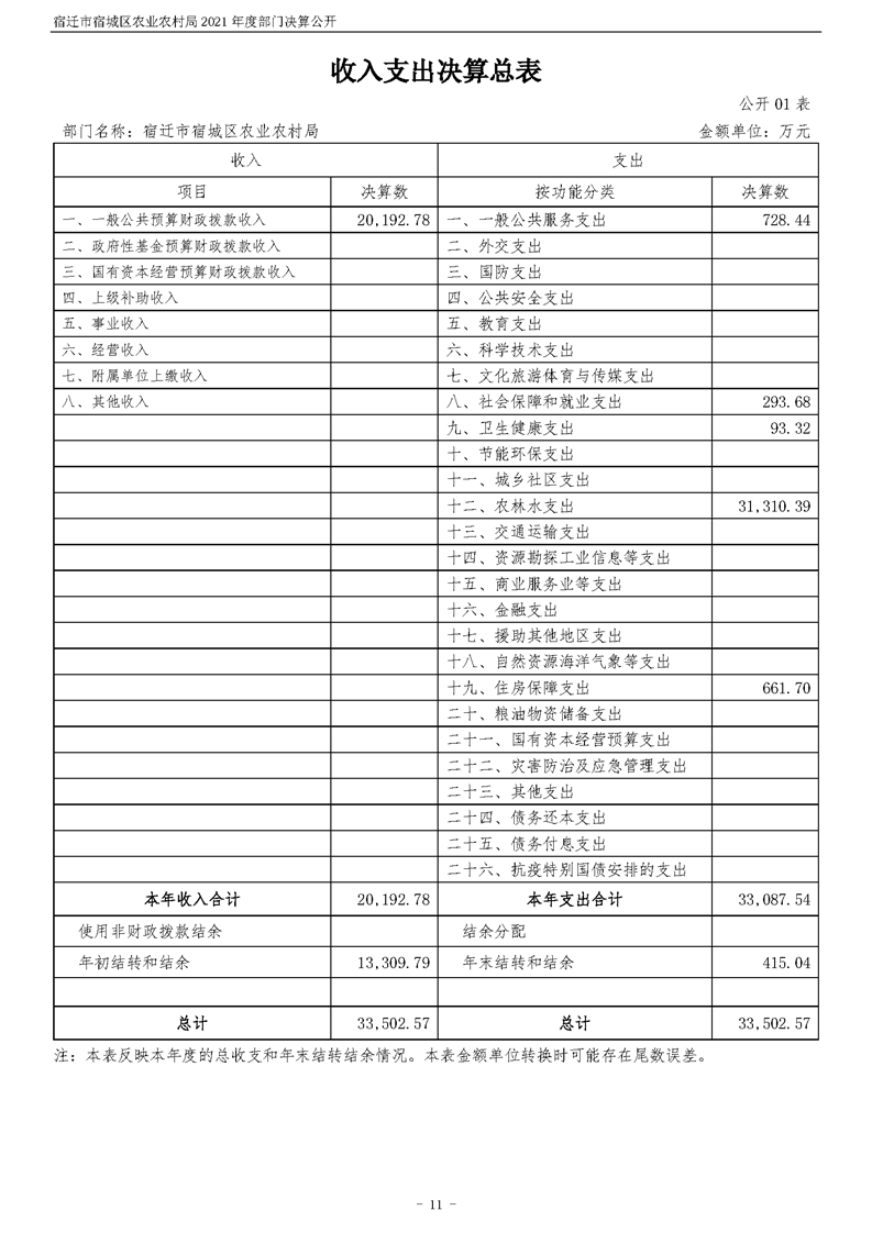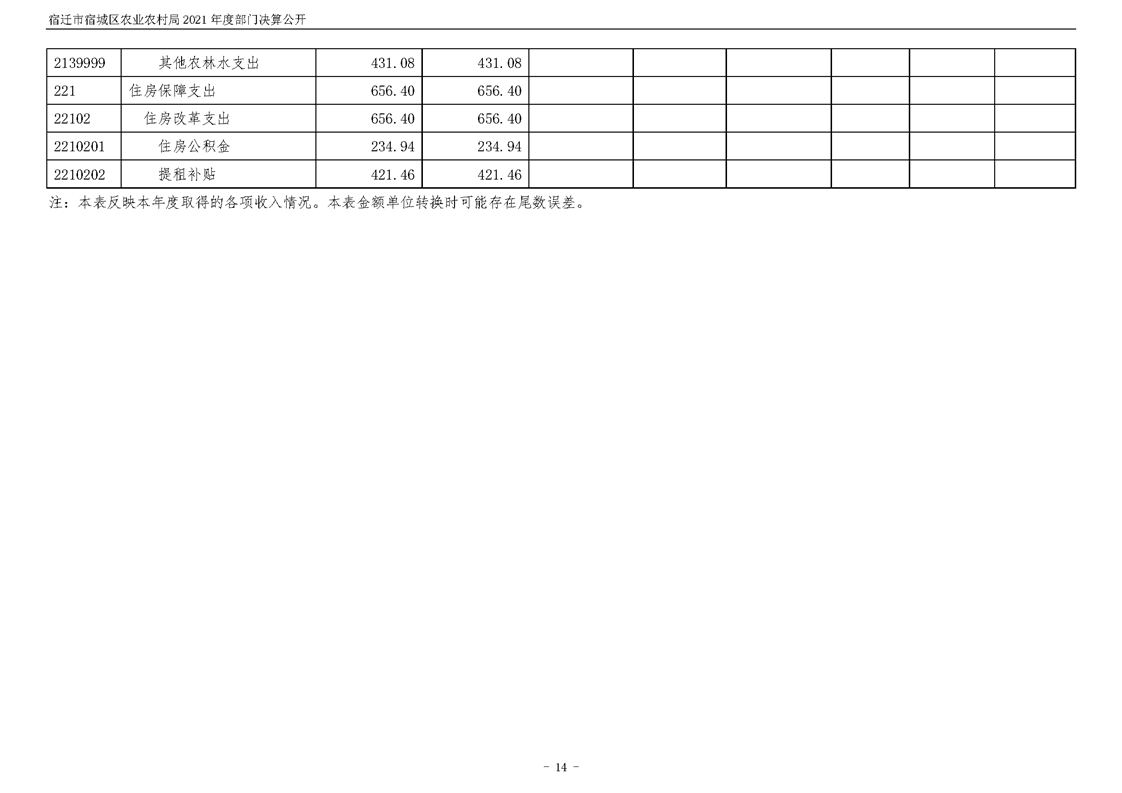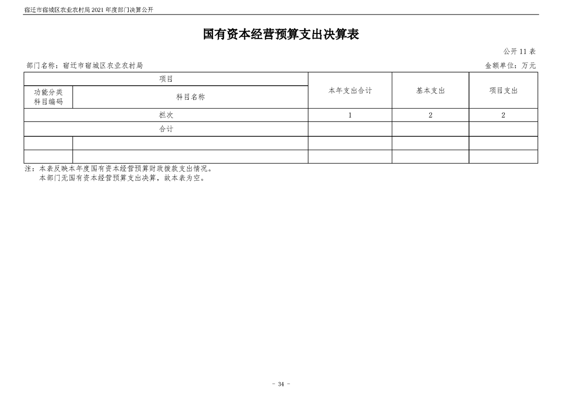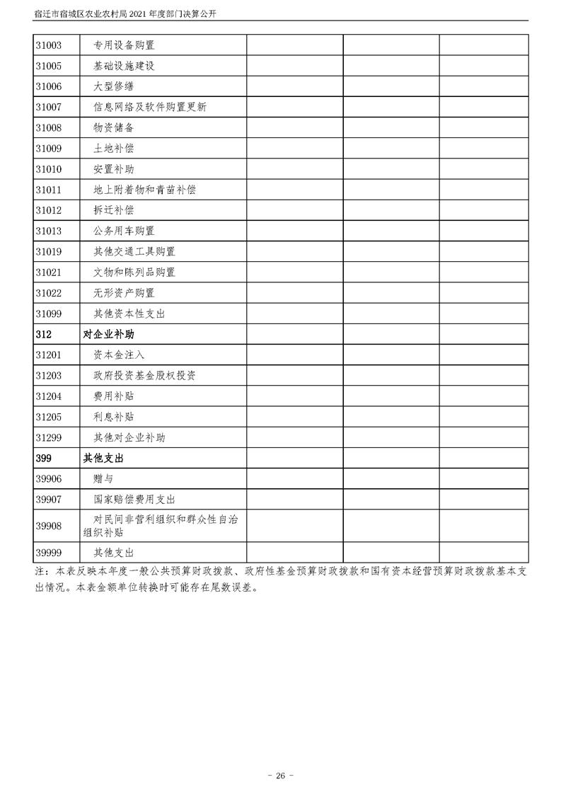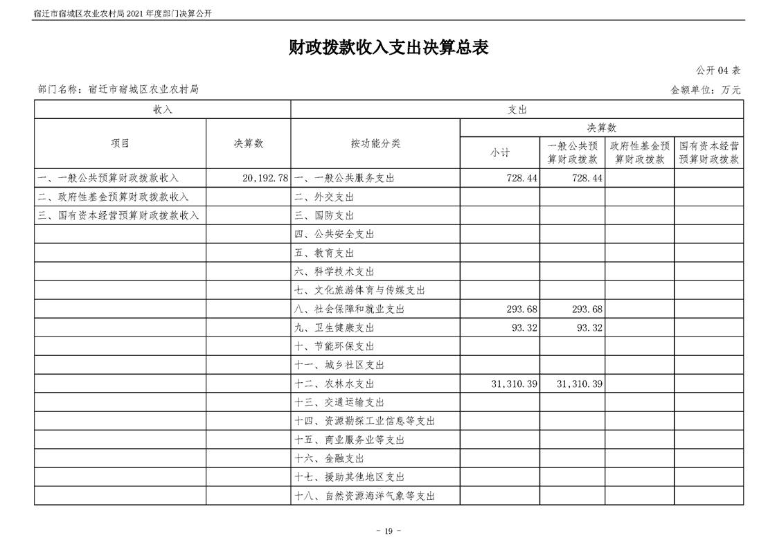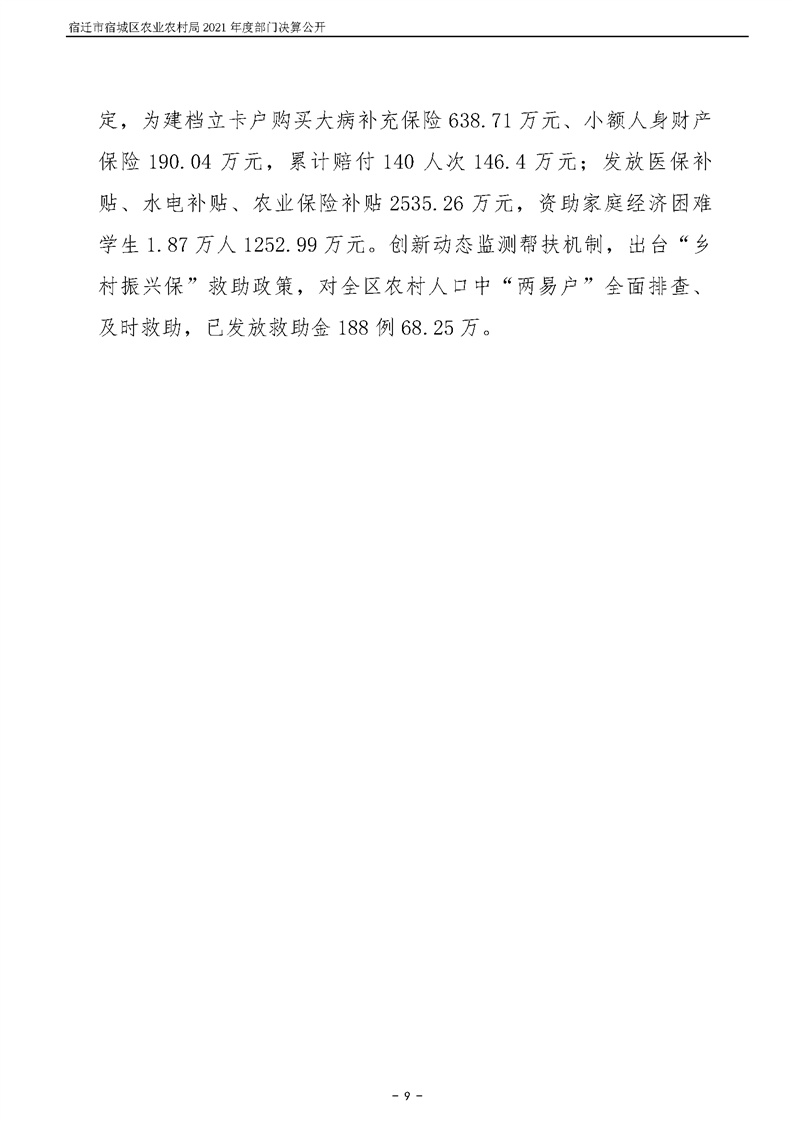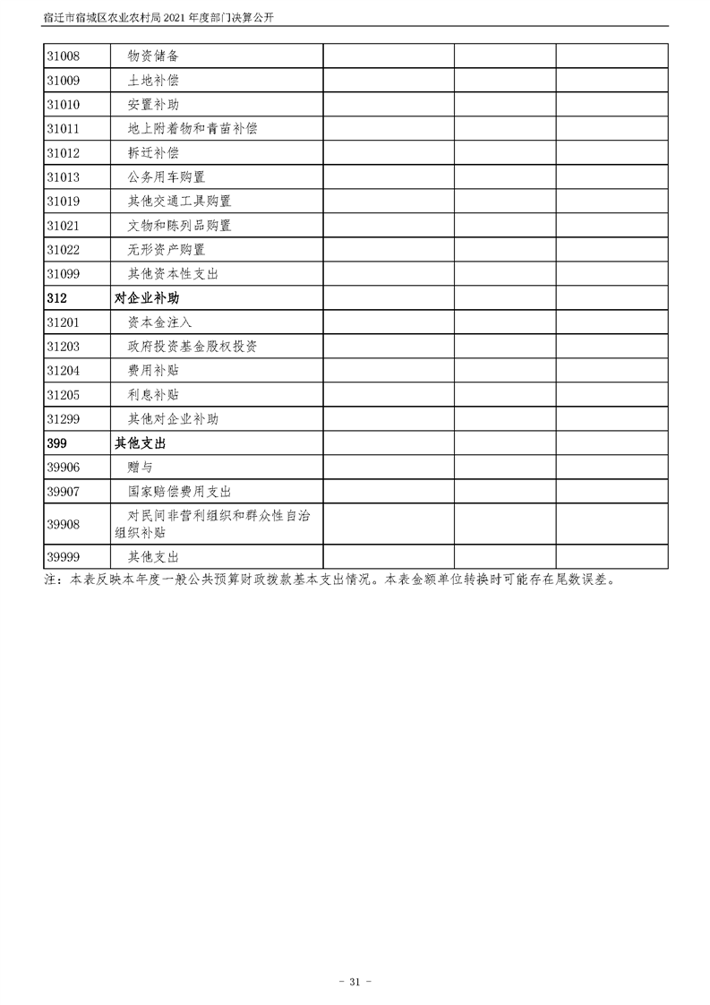 宿遷市宿城區農業農村局2021年度部門決算公開