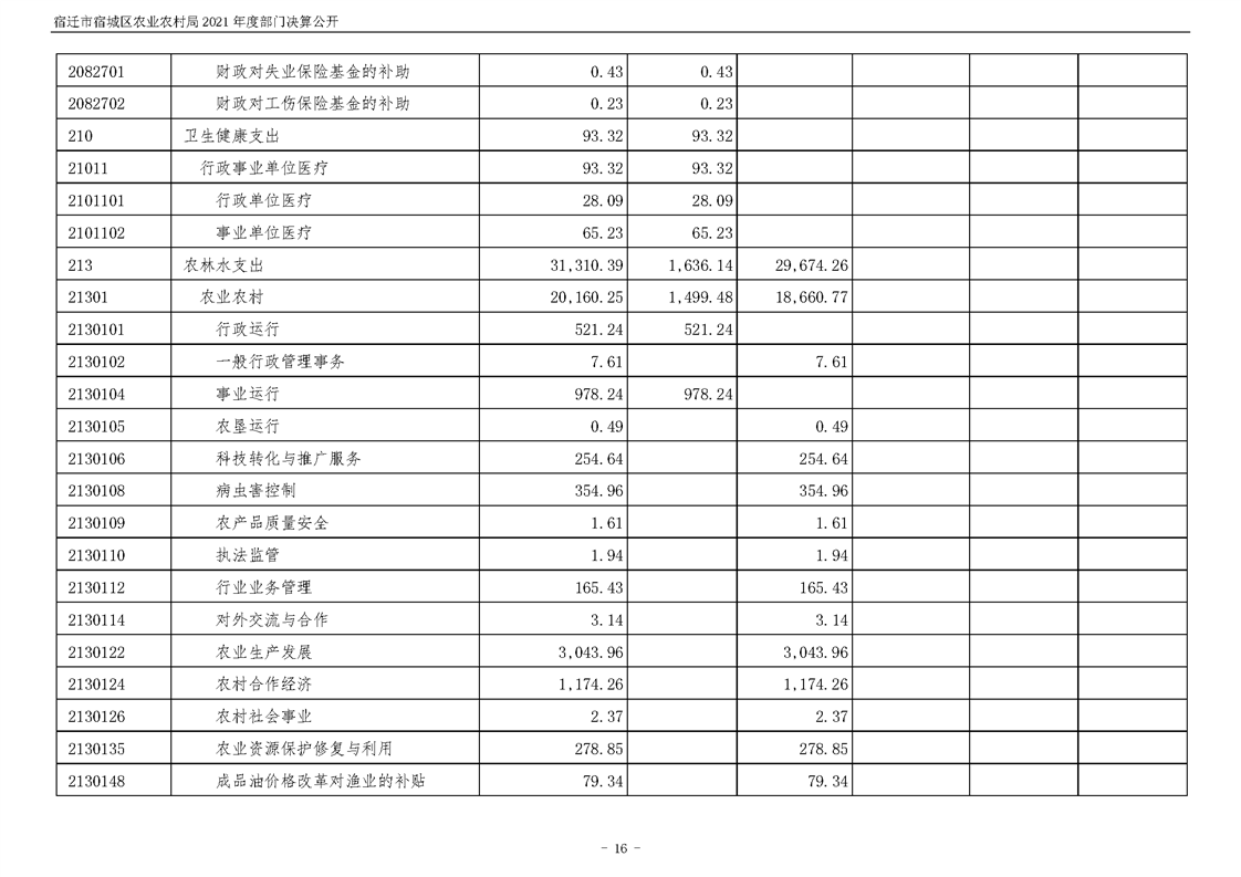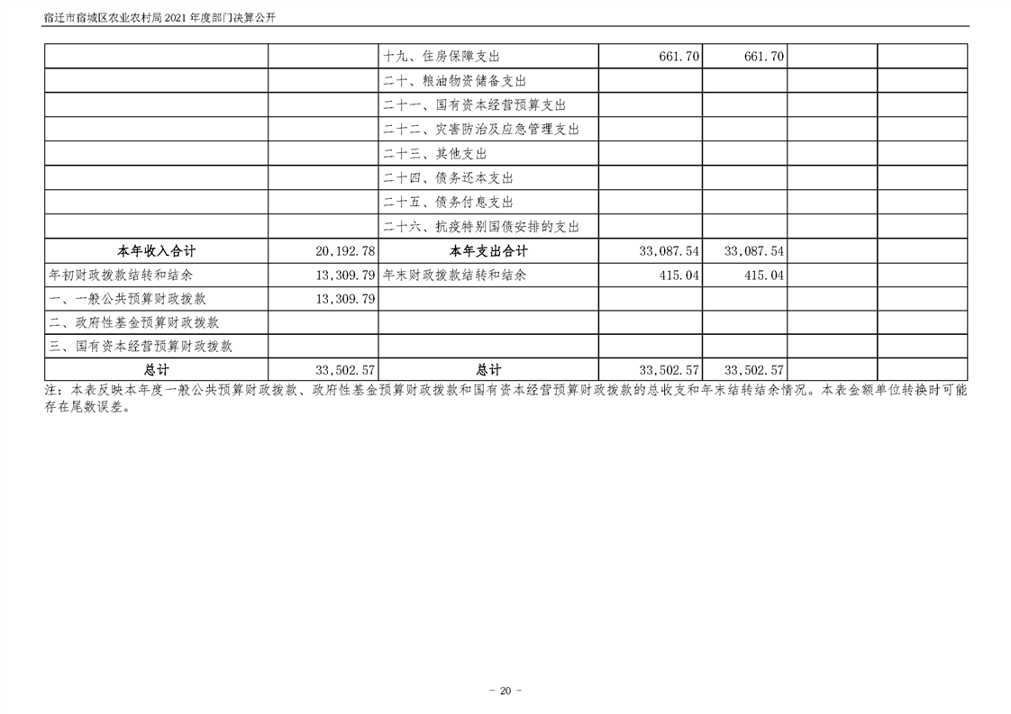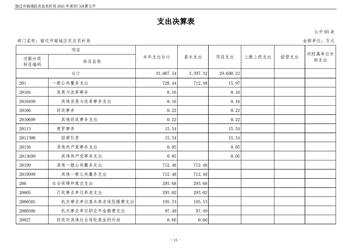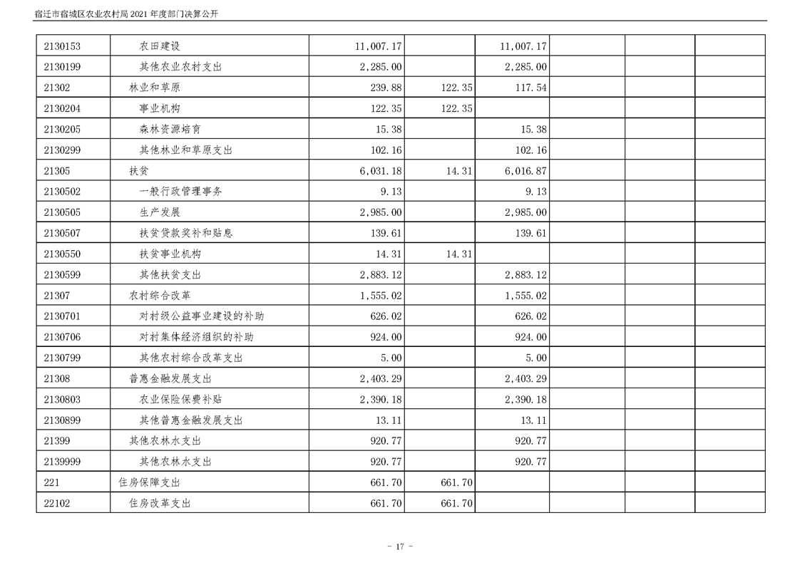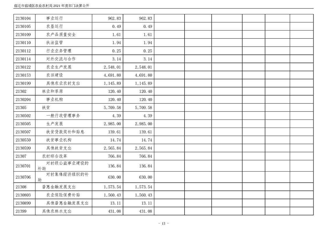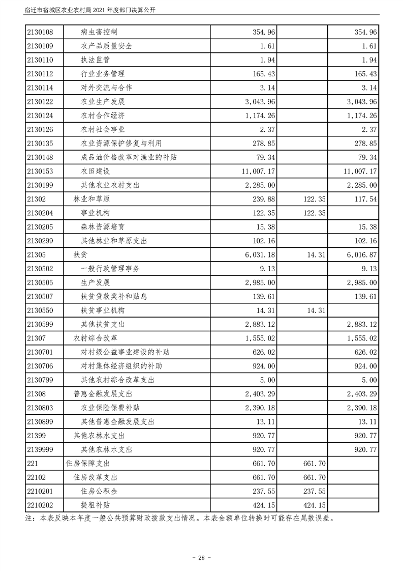 宿遷市宿城區農業農村局2021年度部門決算公開