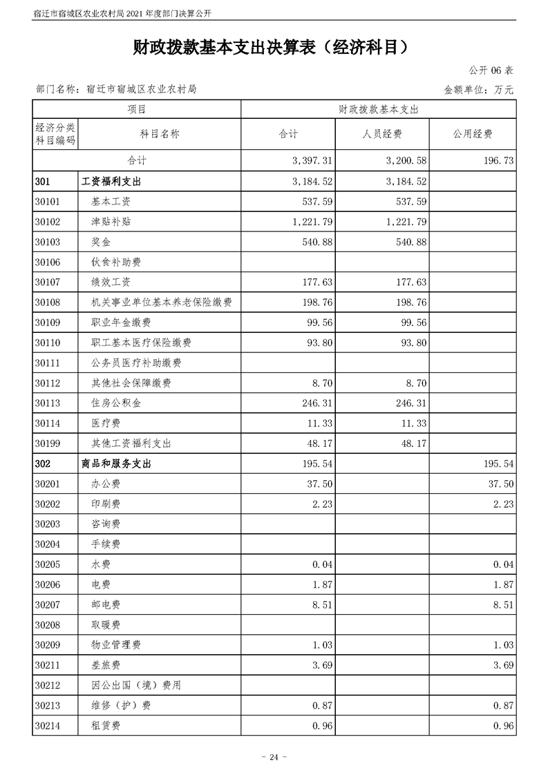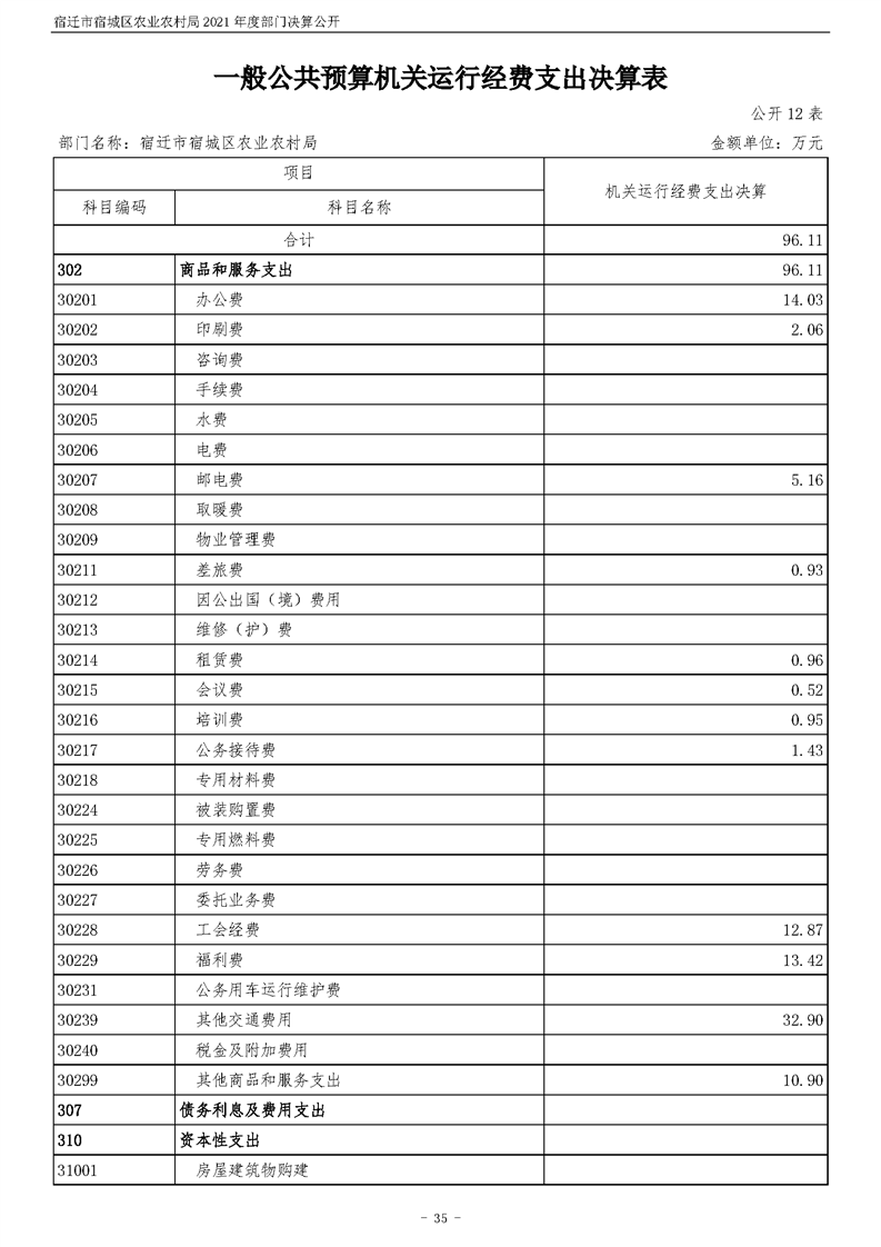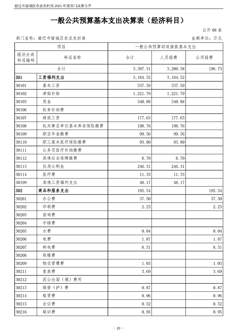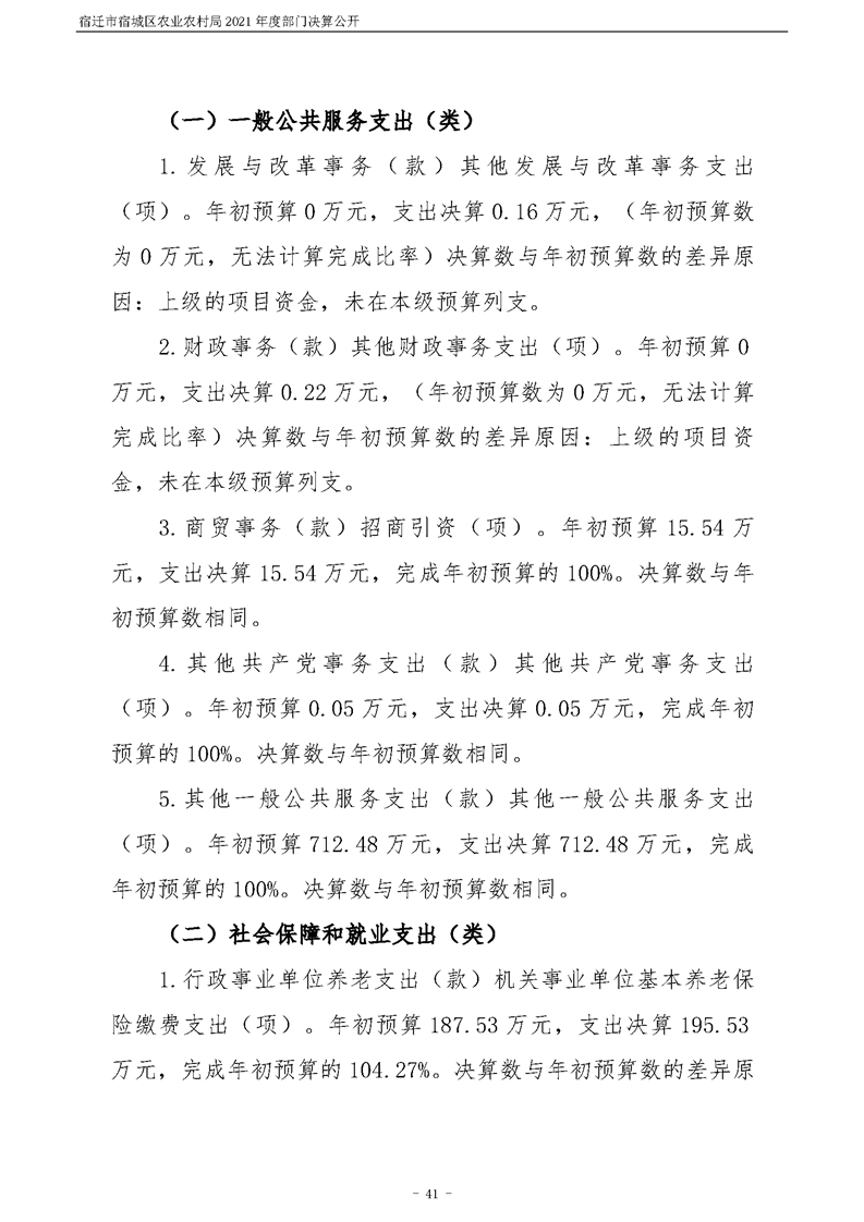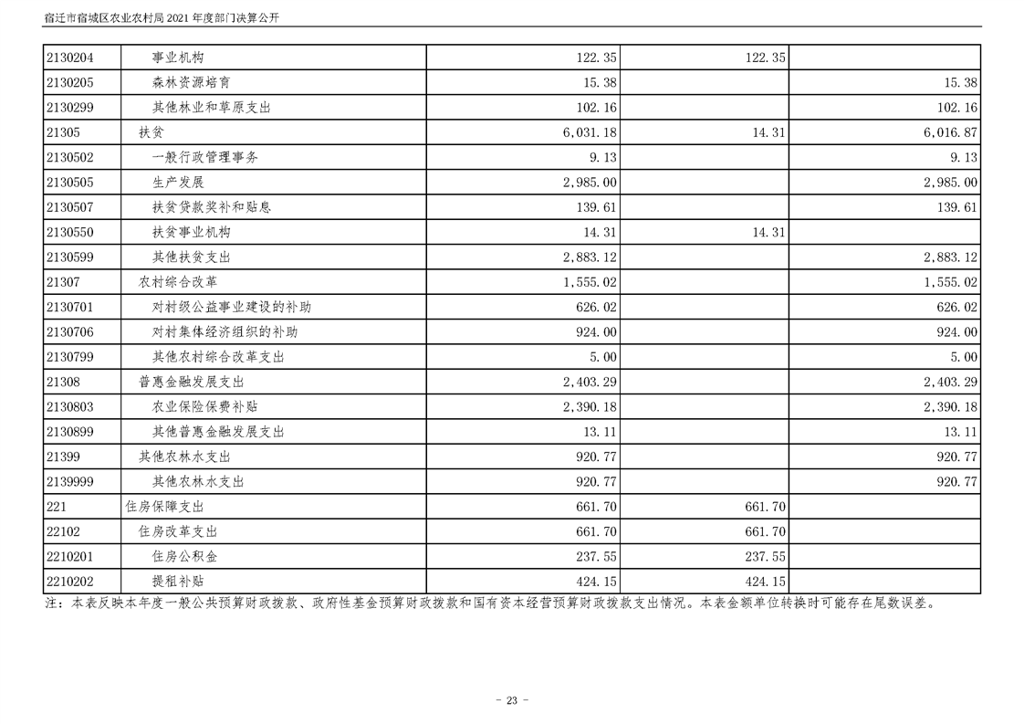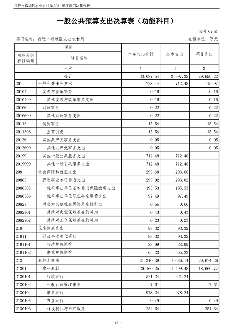 宿遷市宿城區農業農村局2021年度部門決算公開