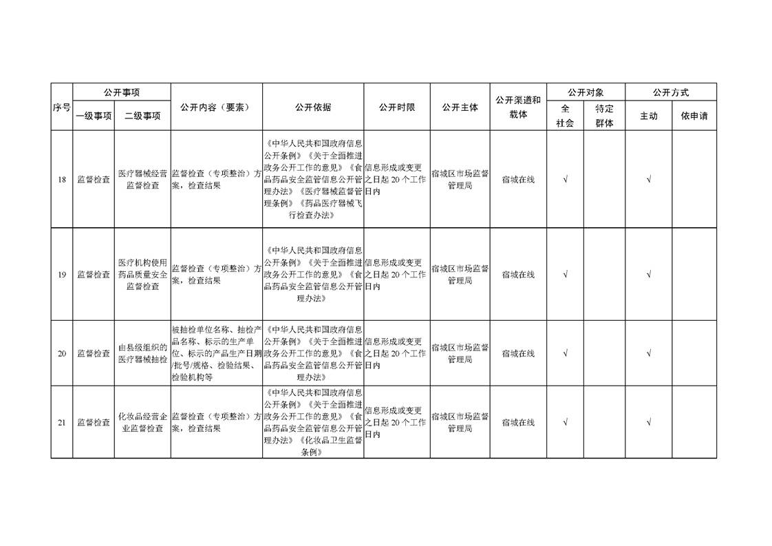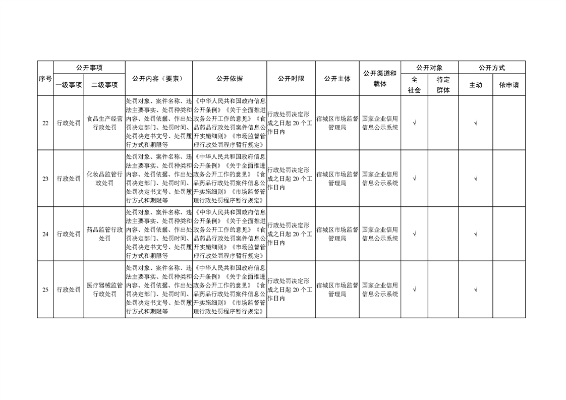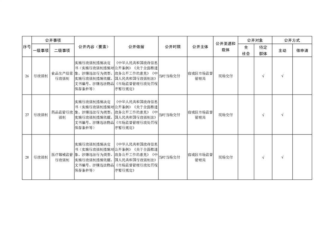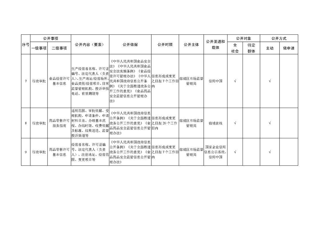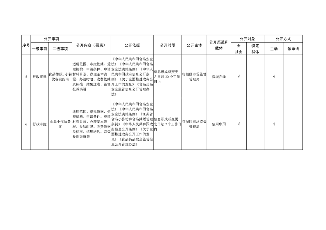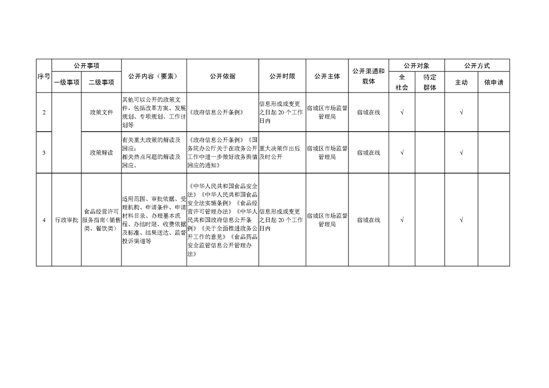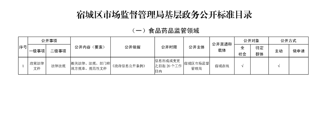 宿城區市場監管局基層政務公開標準目錄(2022版)