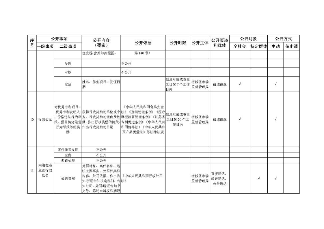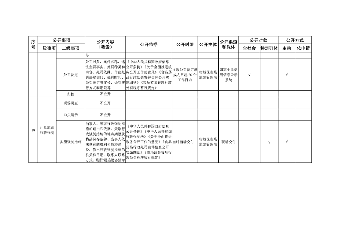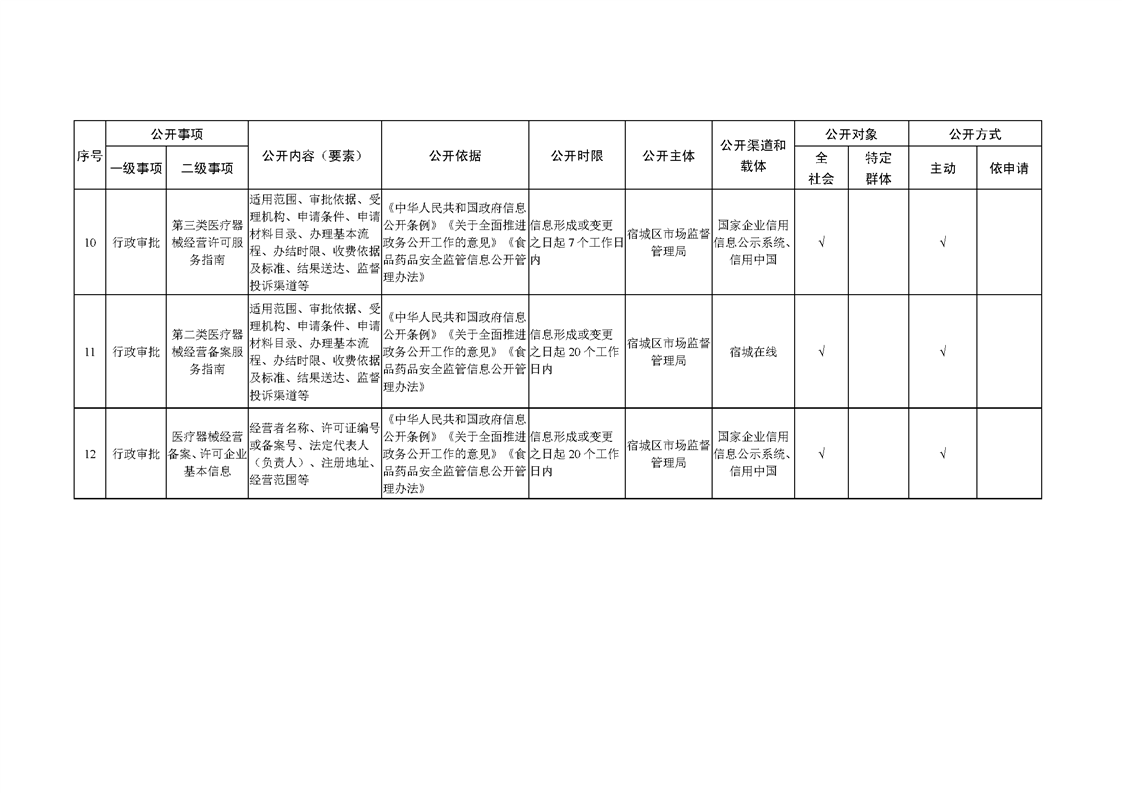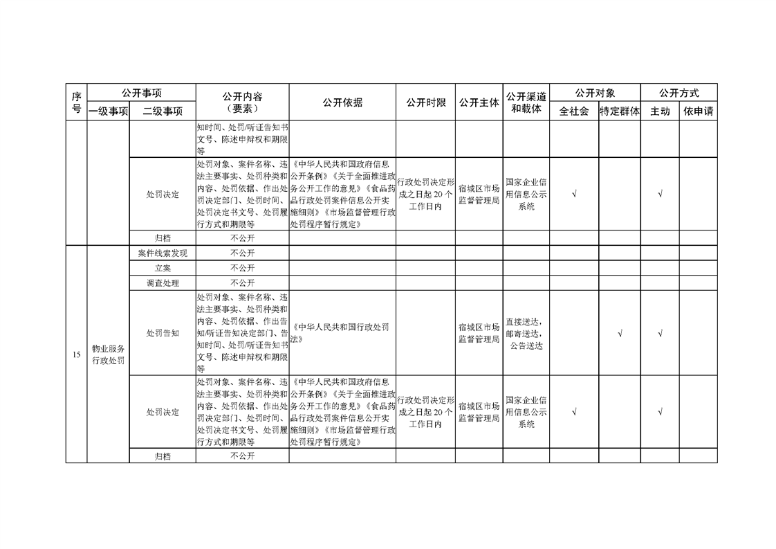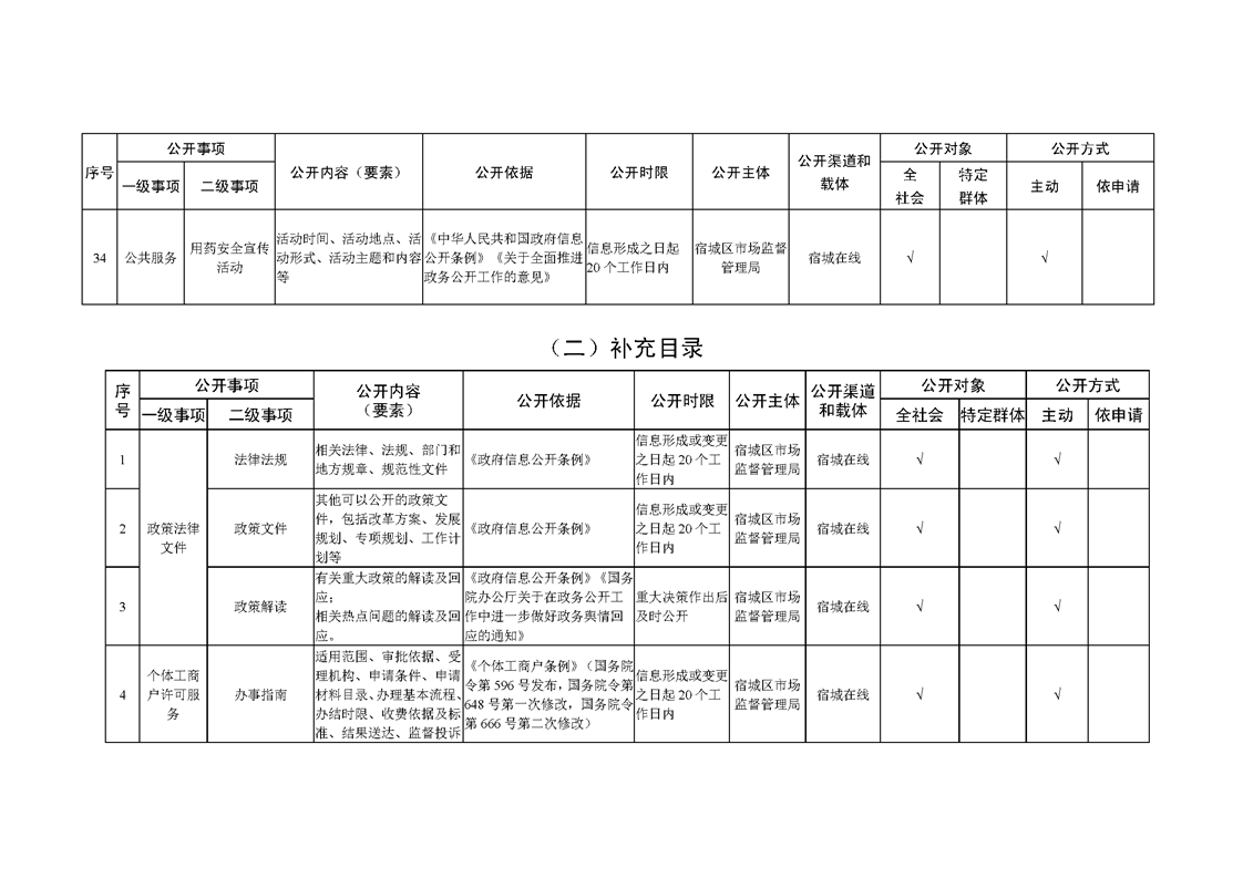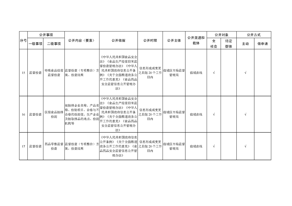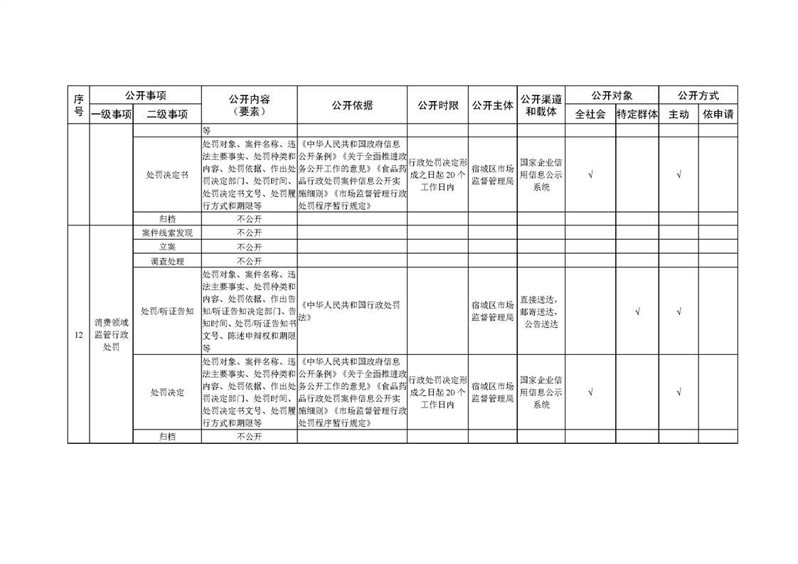 宿城區市場監管局基層政務公開標準目錄(2022版)