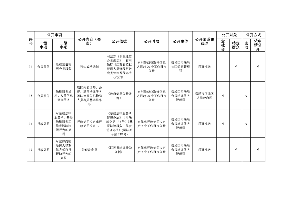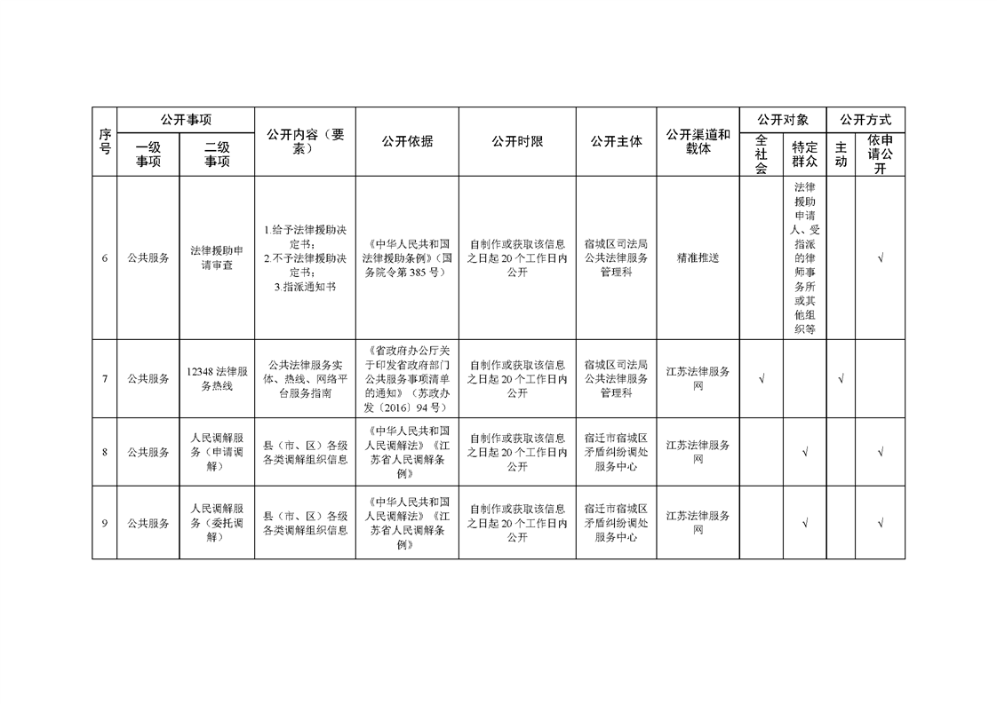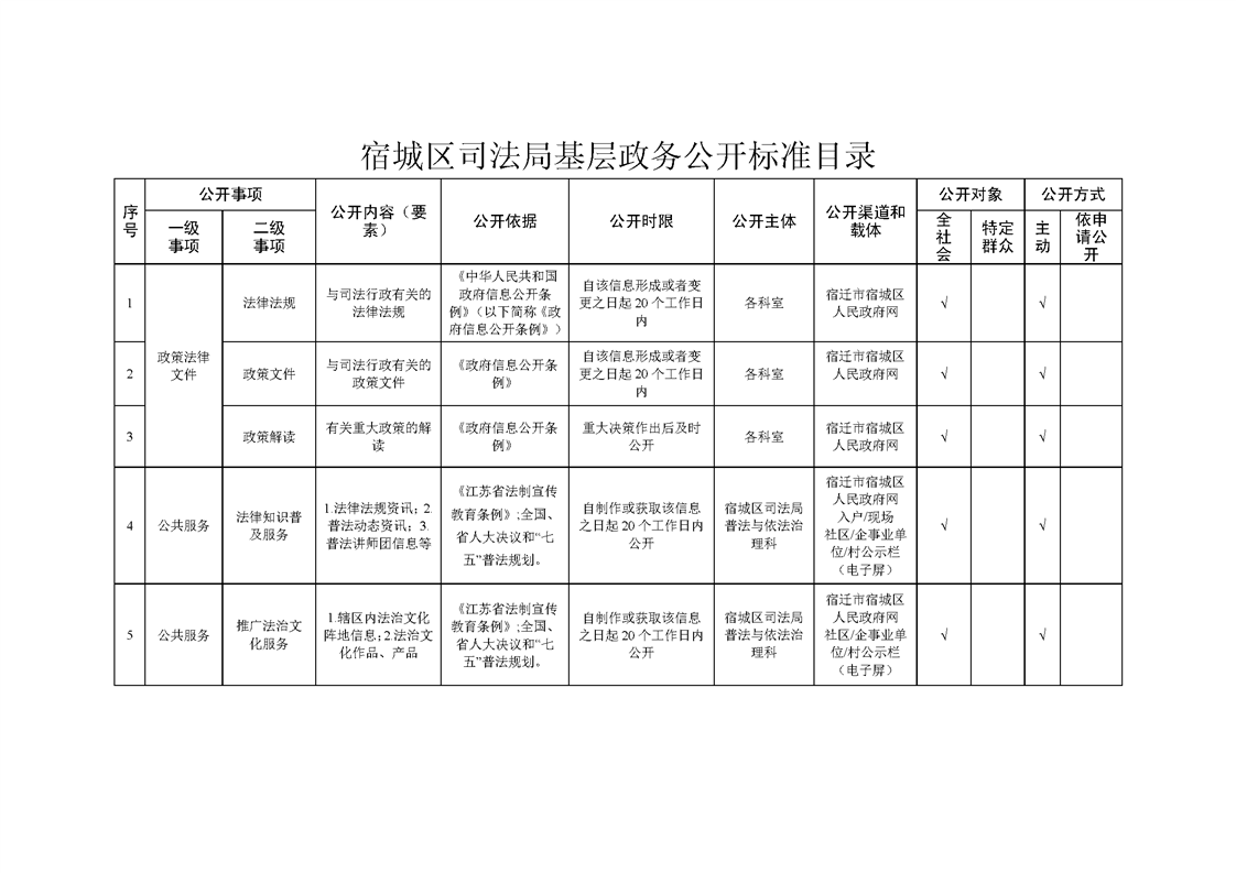 宿城區司法局基層政務公開標準目錄(2022版)