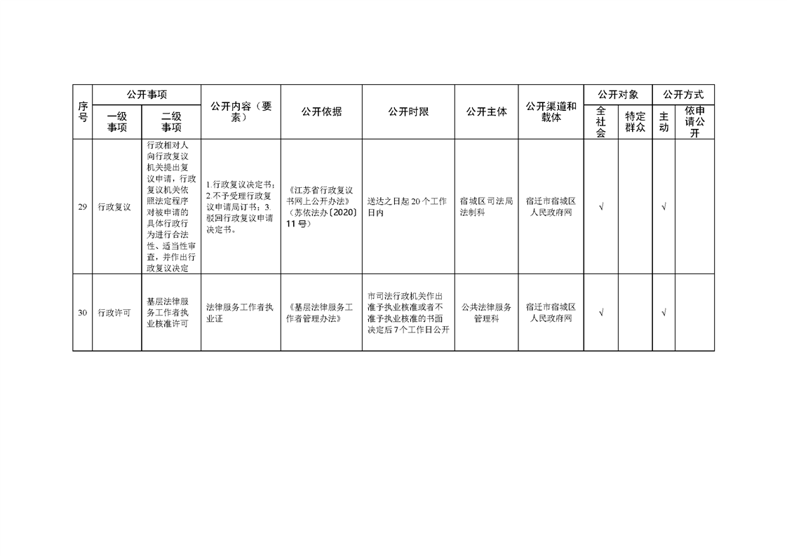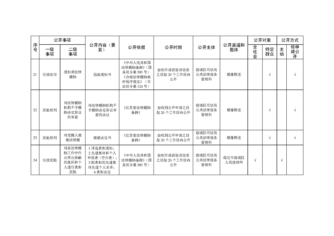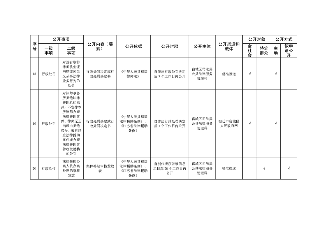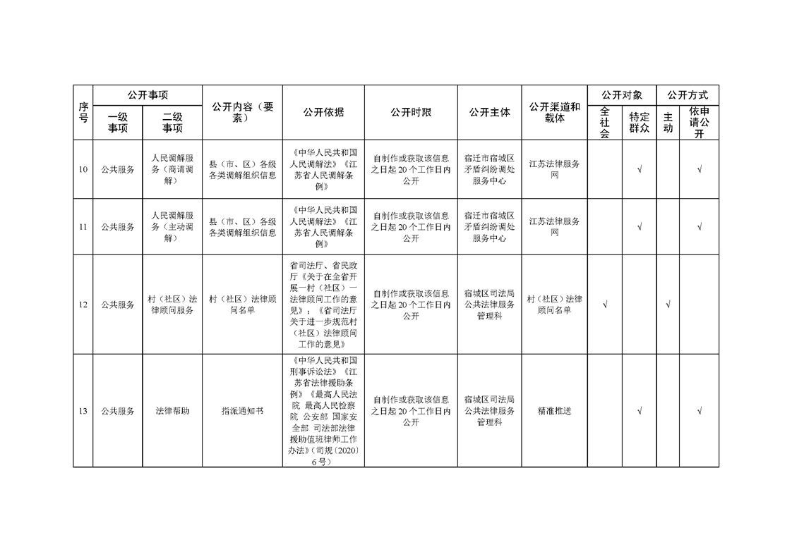 宿城區司法局基層政務公開標準目錄(2022版)