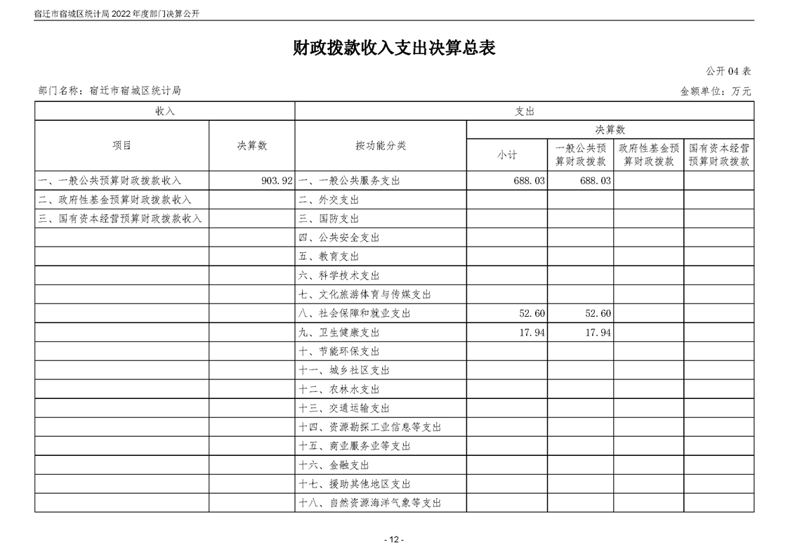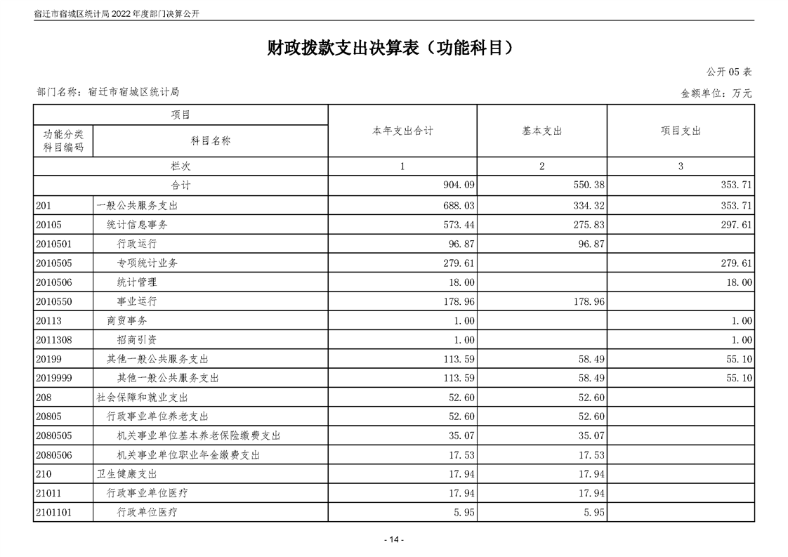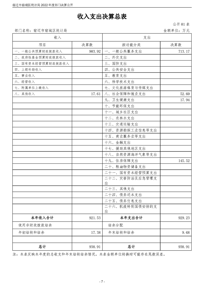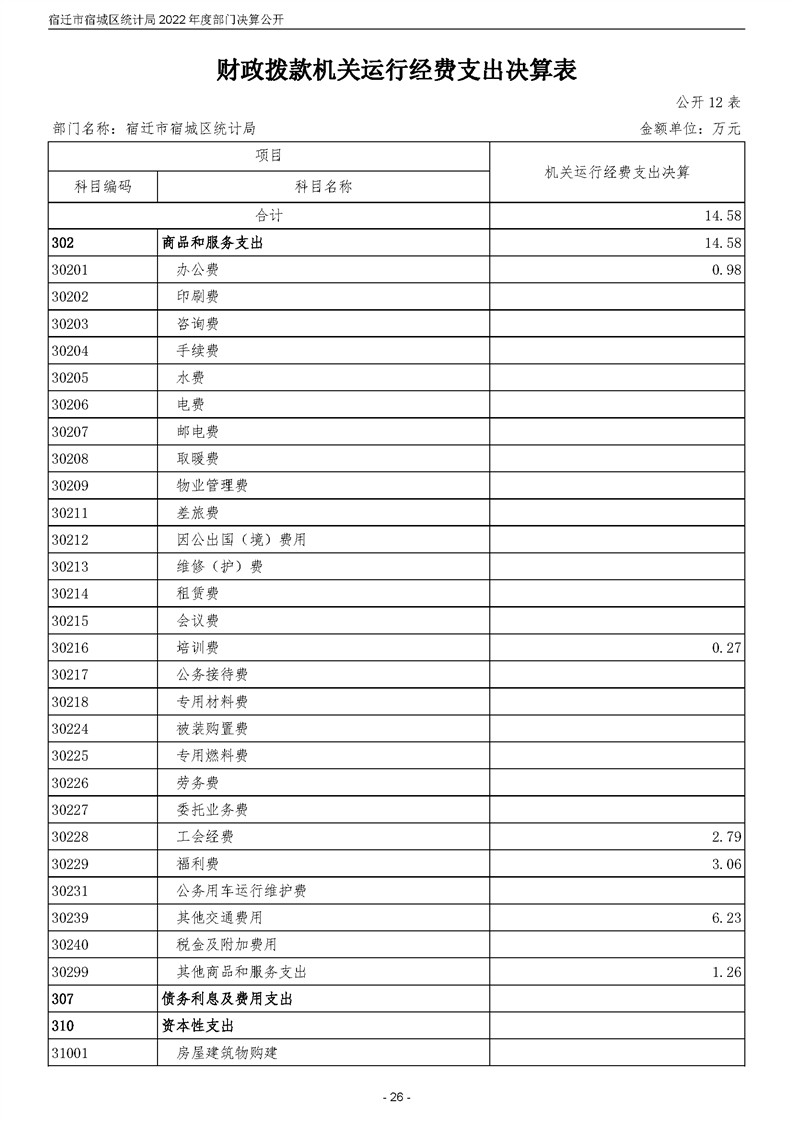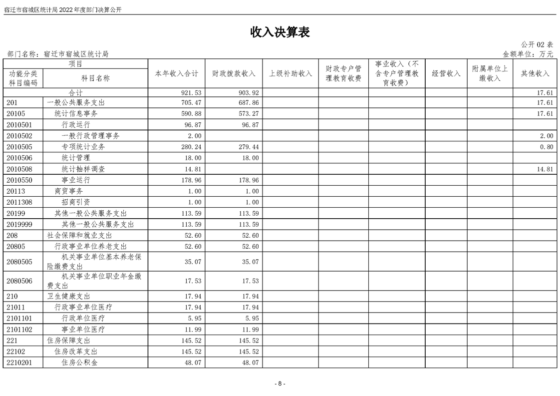 宿遷市宿城區(qū)統(tǒng)計(jì)局2022年度部門(mén)決算公開(kāi)