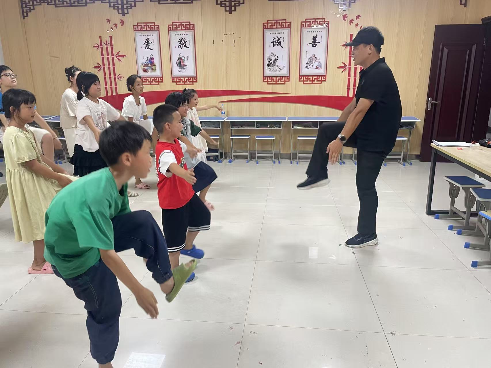 當天活動的主題是“七彩夏日情 體藝入童心”。運動健身課程結束休息十分鐘,孩子們又上起了音樂課。歌唱是一種情感表達,志愿者教授孩子們正確的呼吸方法以及如何調整發聲方式,引導他們運用聲音和技巧準確地表達情感。孩子仔細聽、認真學,在歌唱中感受音樂的美妙和生活的美好。