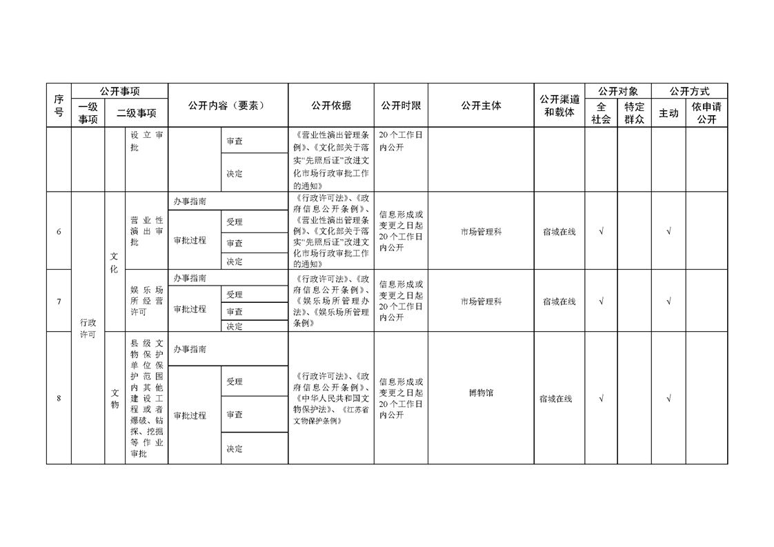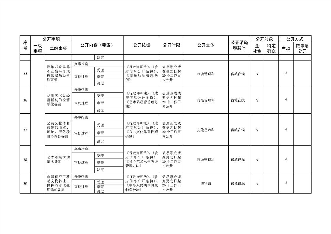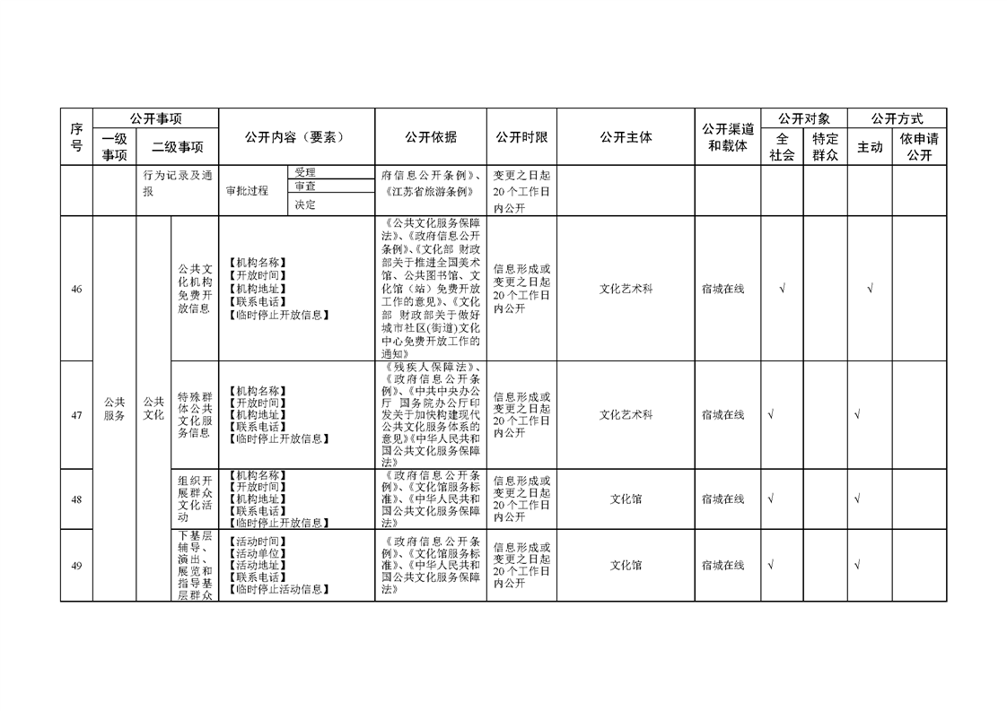 宿城區(qū)文化廣電和旅游局基層政務(wù)公開標準目錄(2023版)