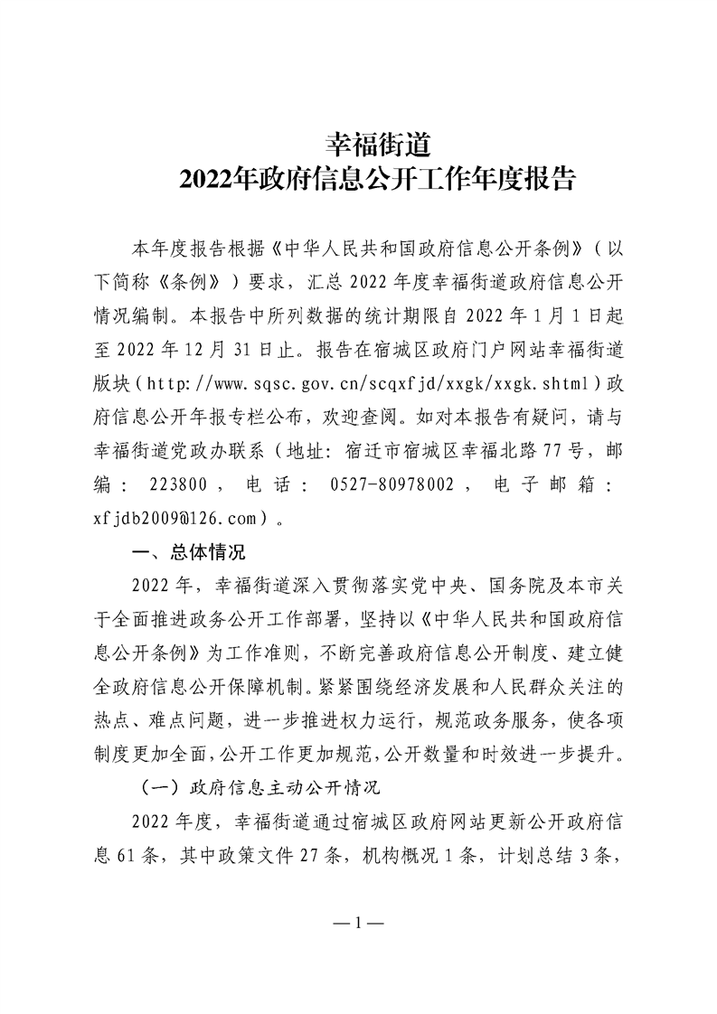 幸福街道2022年政府信息公開工作年度報(bào)告