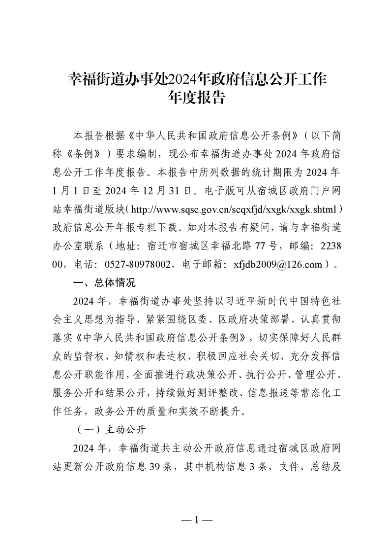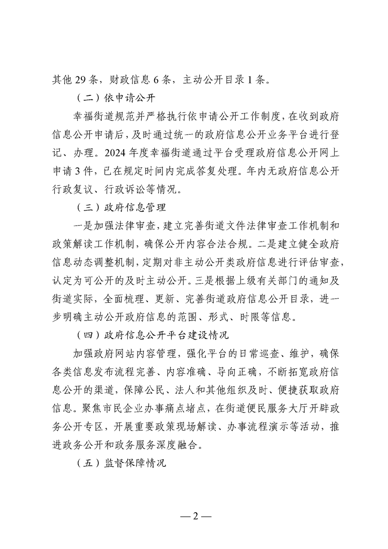 幸福街道辦事處2024年政府信息公開工作年度報告