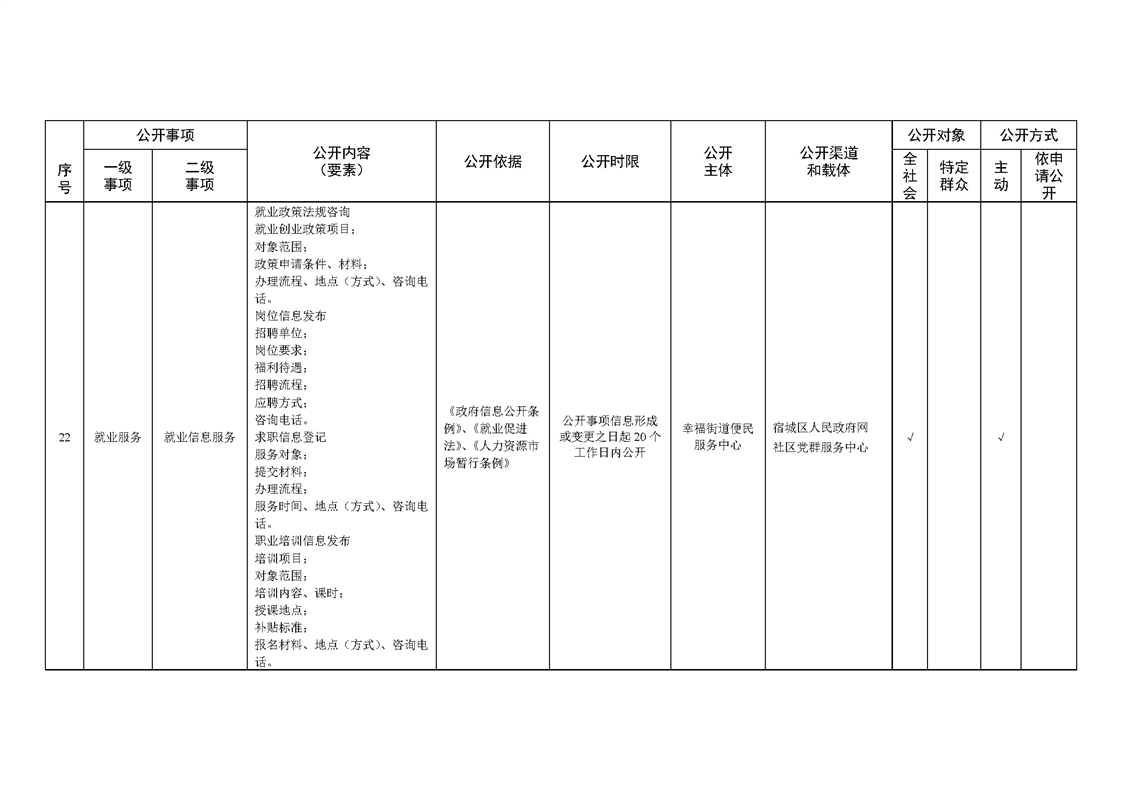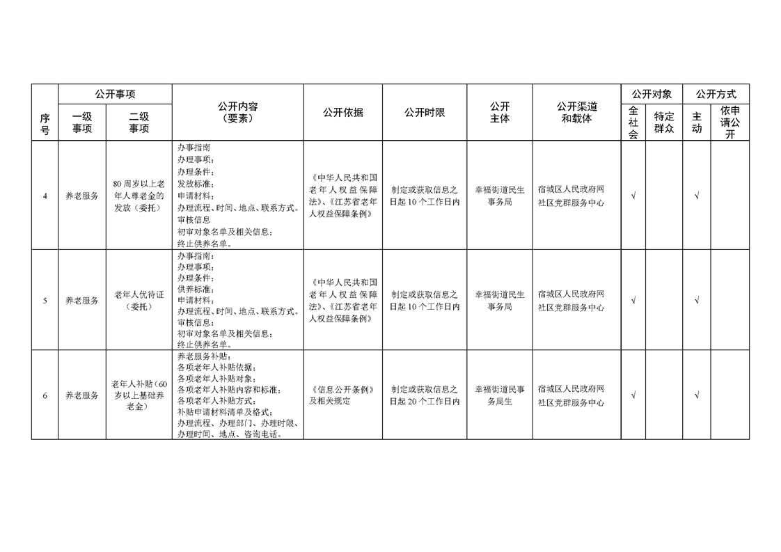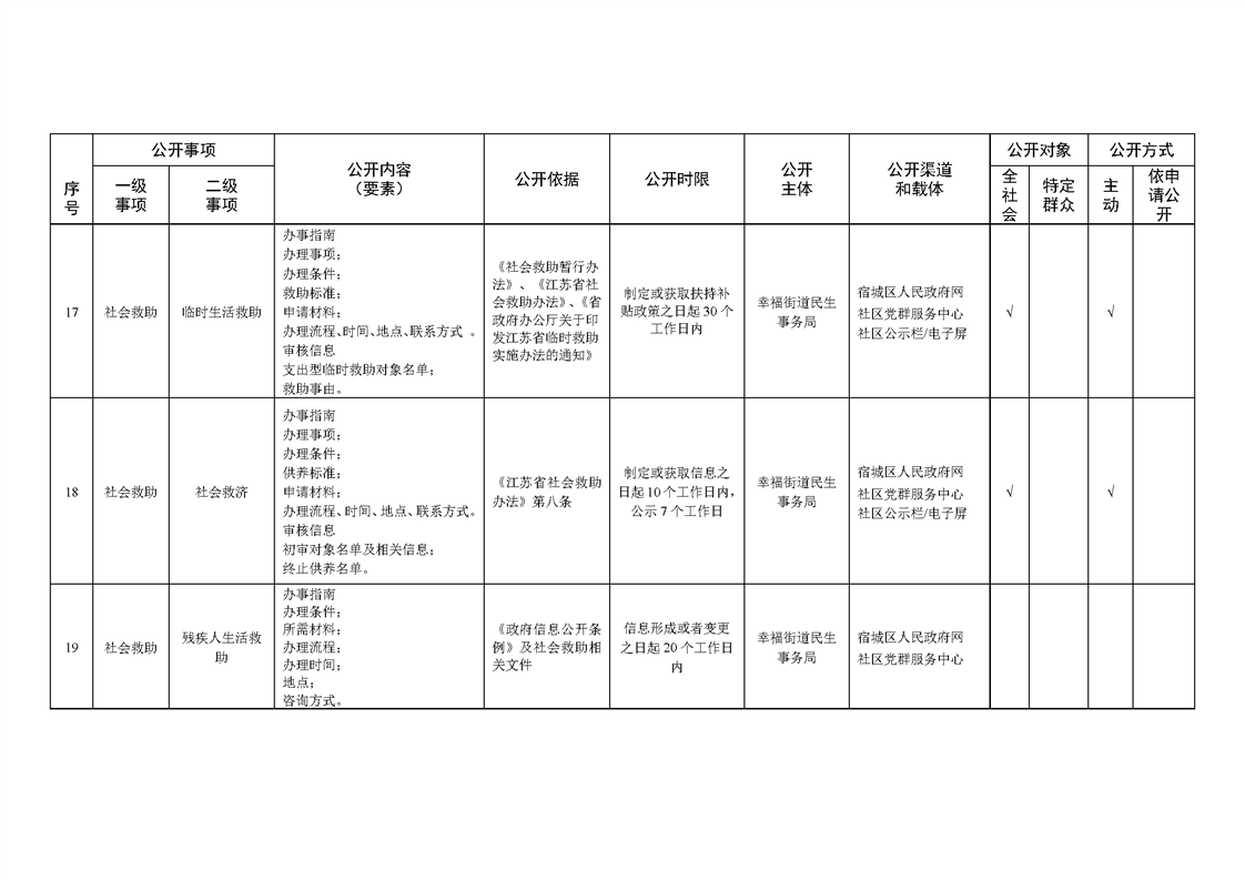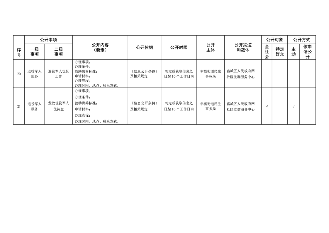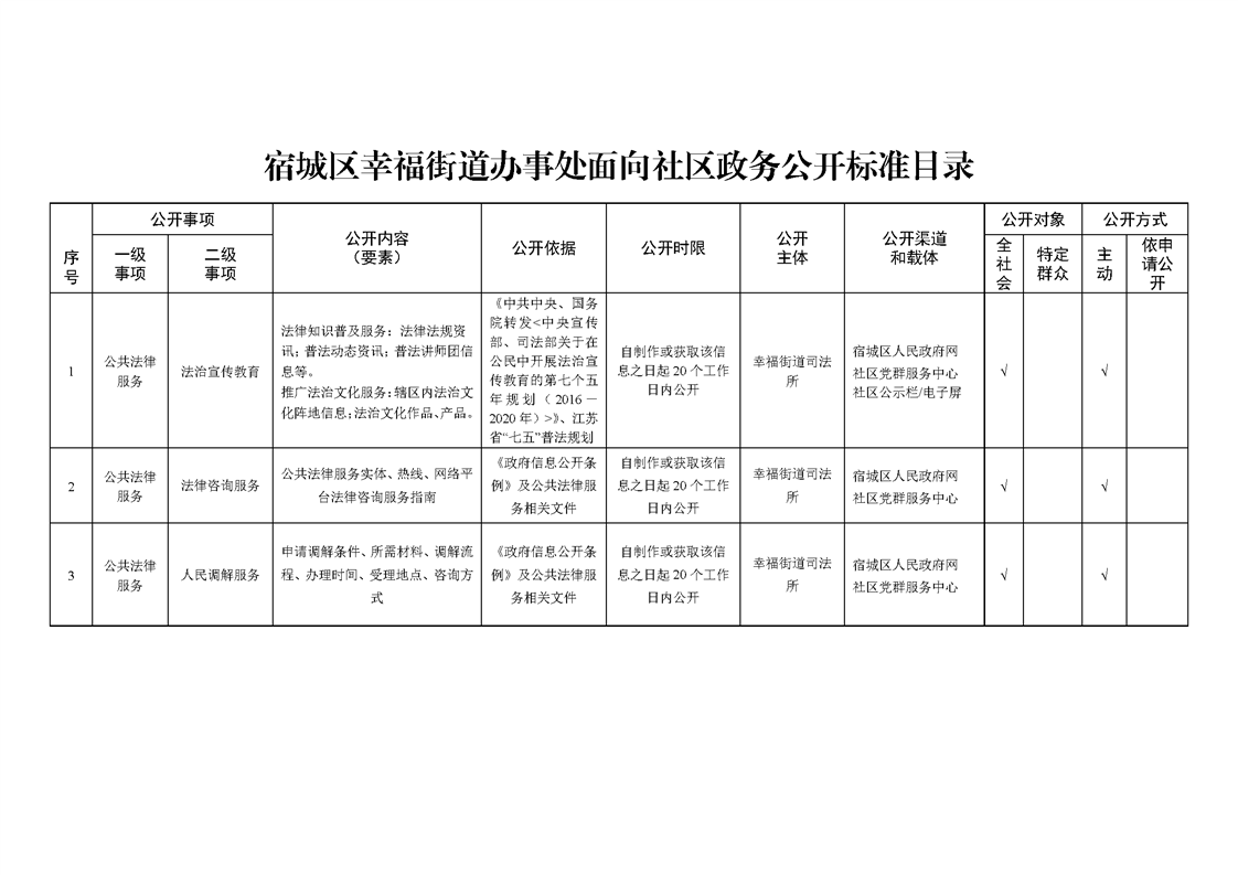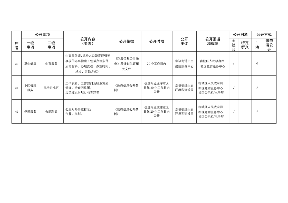 宿城區幸福街道辦事處面向社區政務公開標準目錄(2023年版)