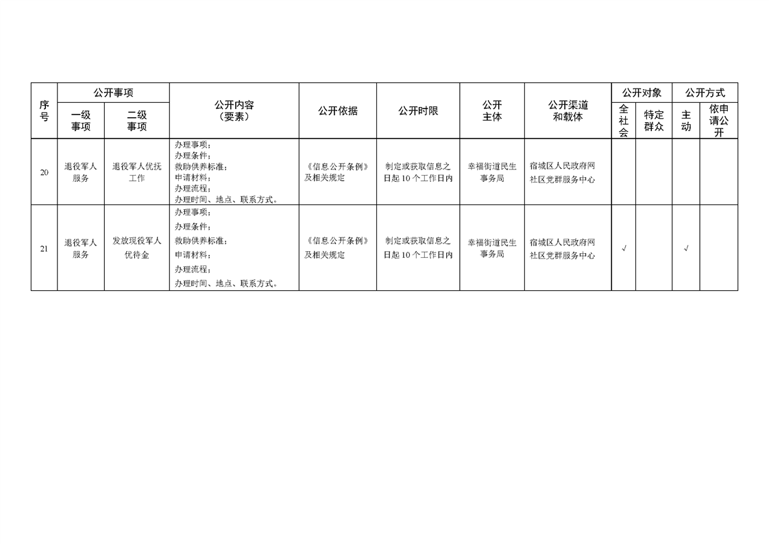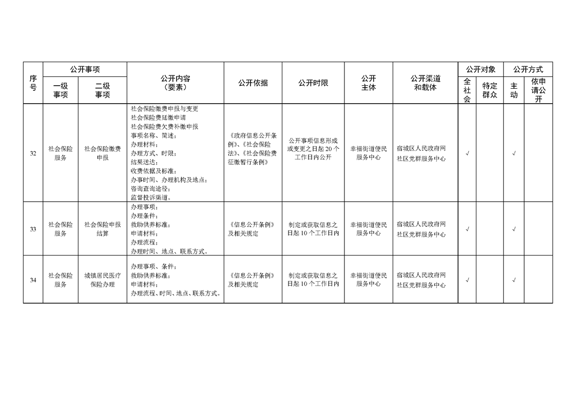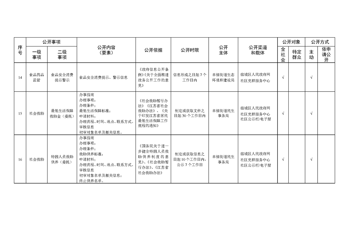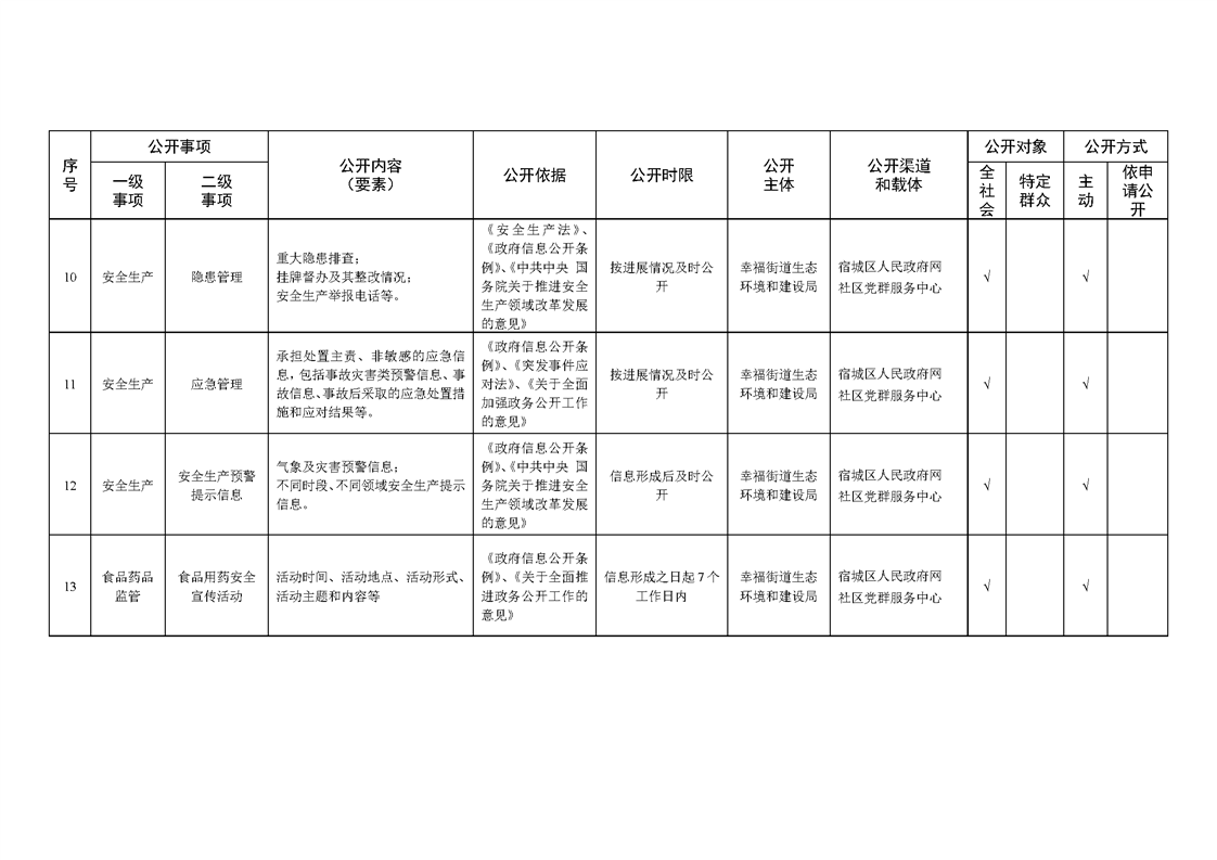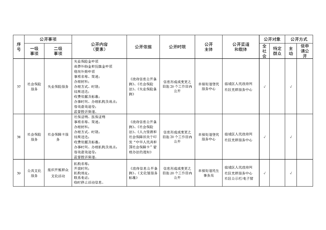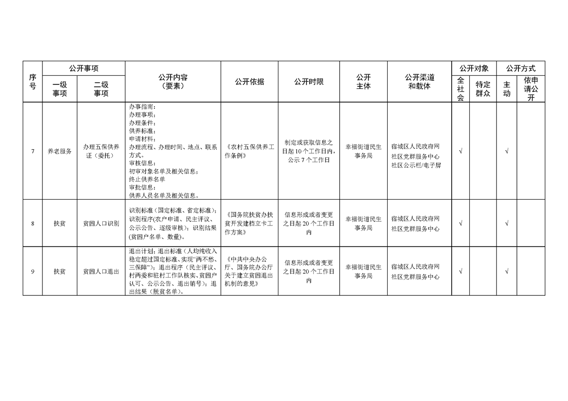 宿城區幸福街道辦事處面向社區政務公開標準目錄(2024年版)
