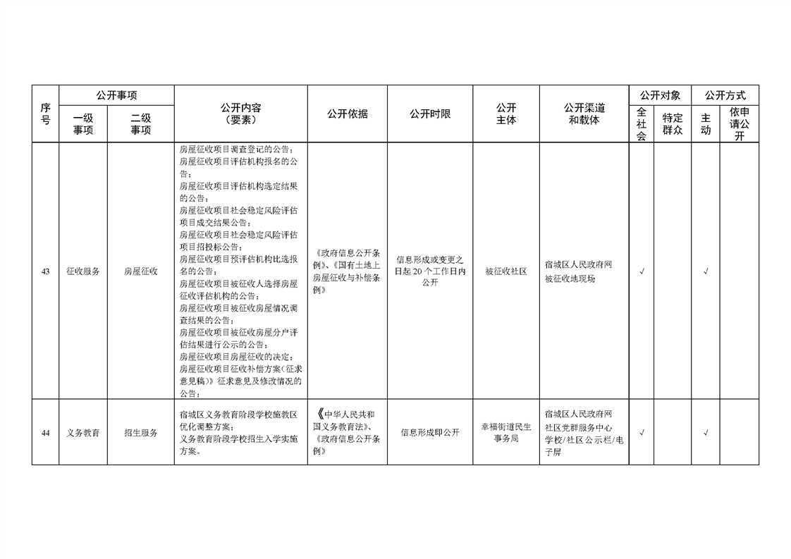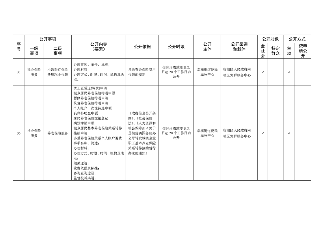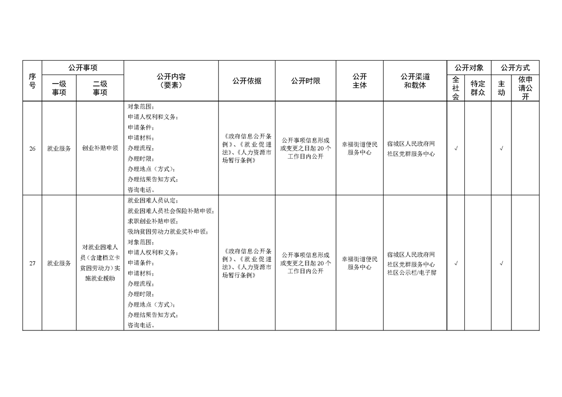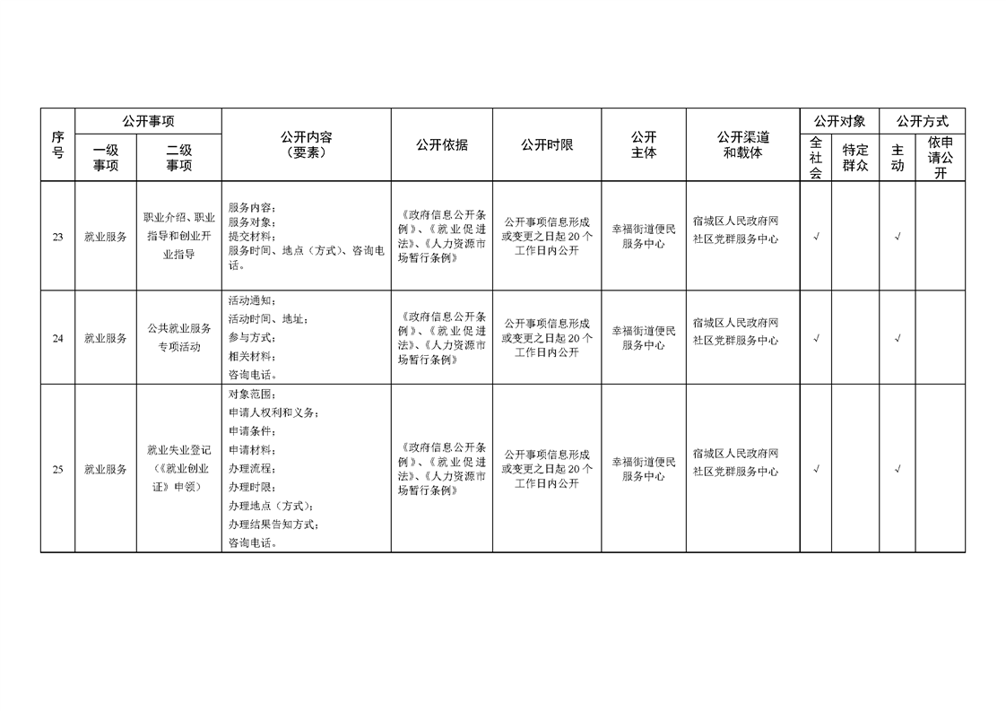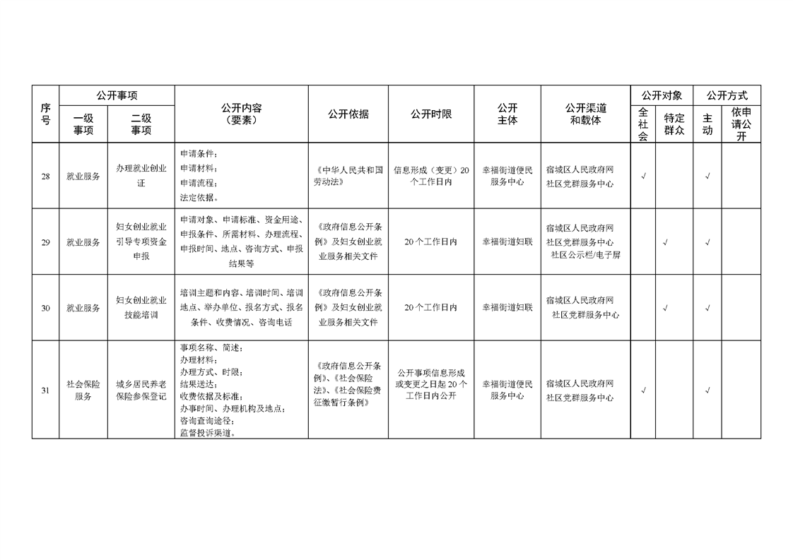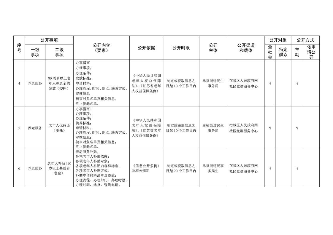 宿城區幸福街道辦事處面向社區政務公開標準目錄(2024年版)