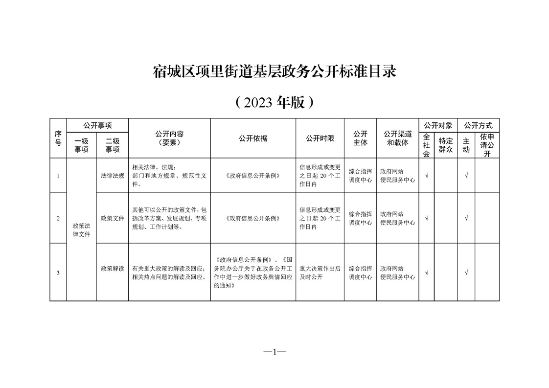 宿城區項里街道基層政務公開標準目錄(2025)