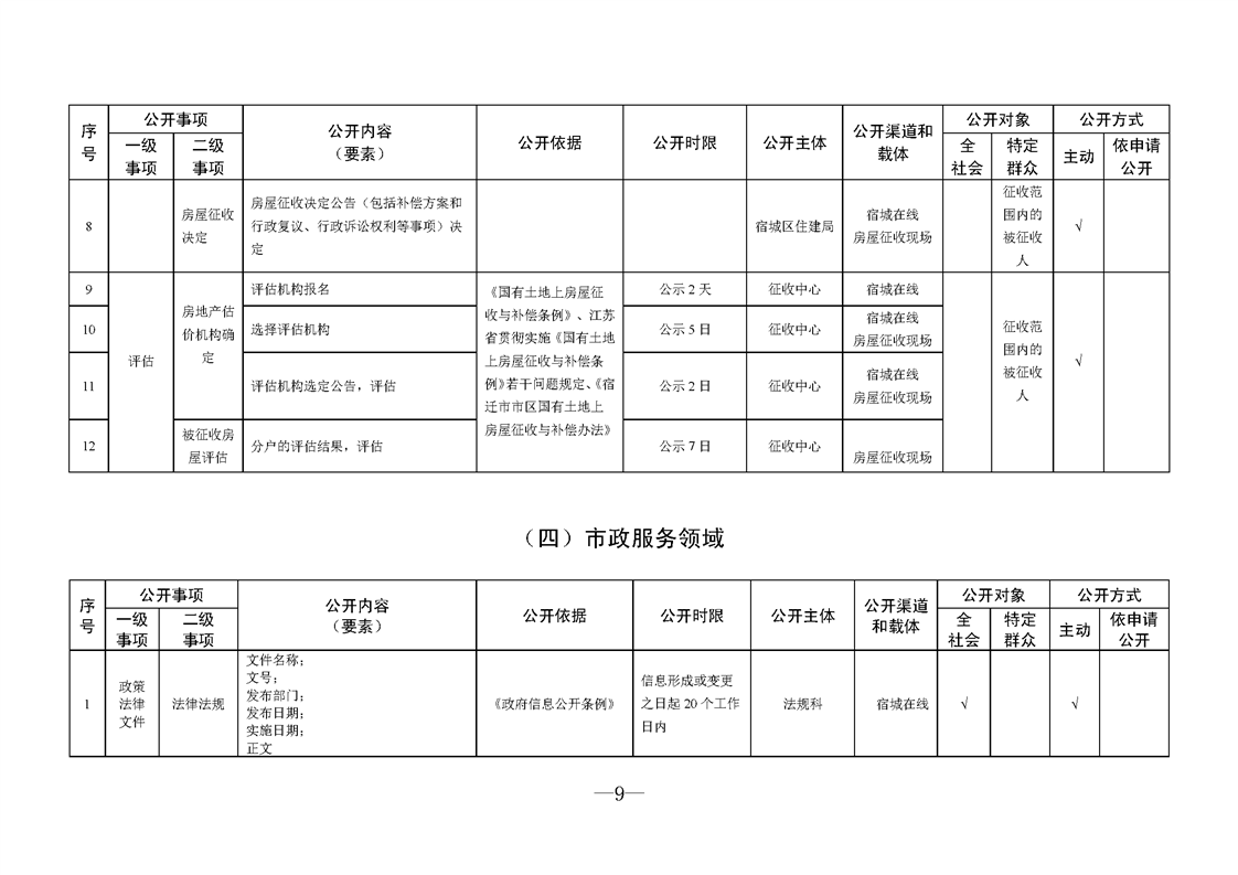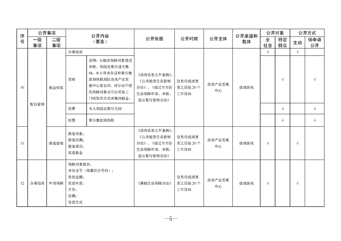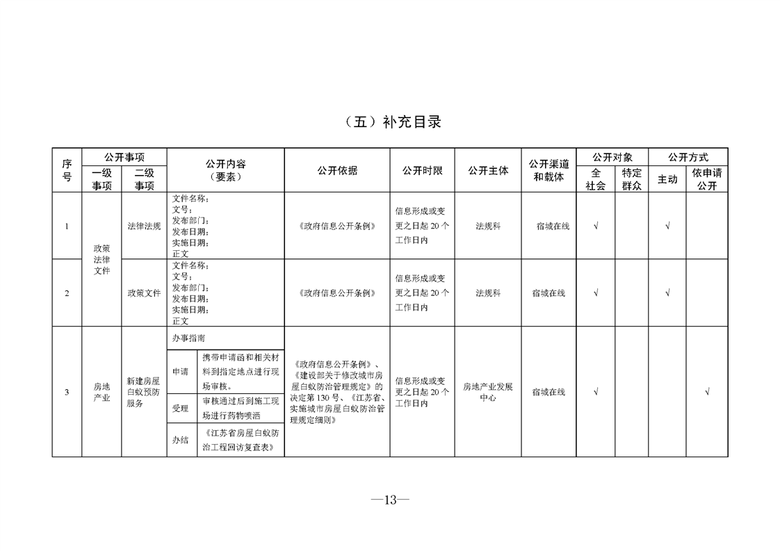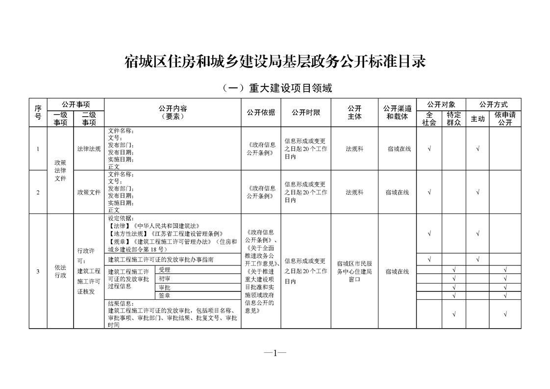 宿城區住房和城鄉建設局基層政務公開標準目錄(2022版)