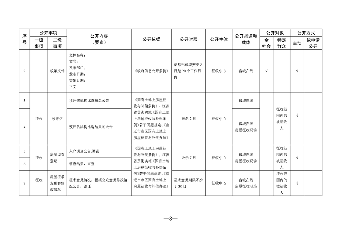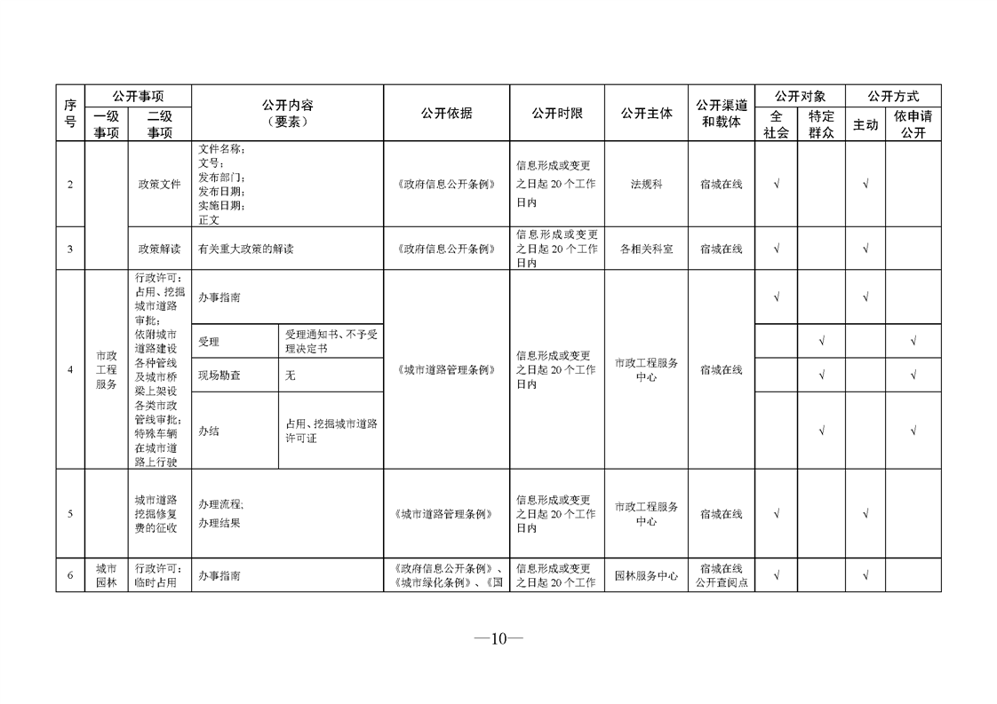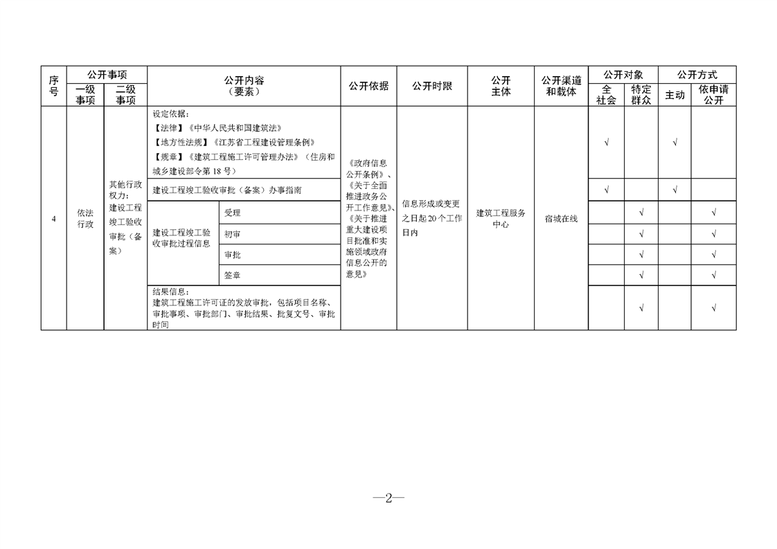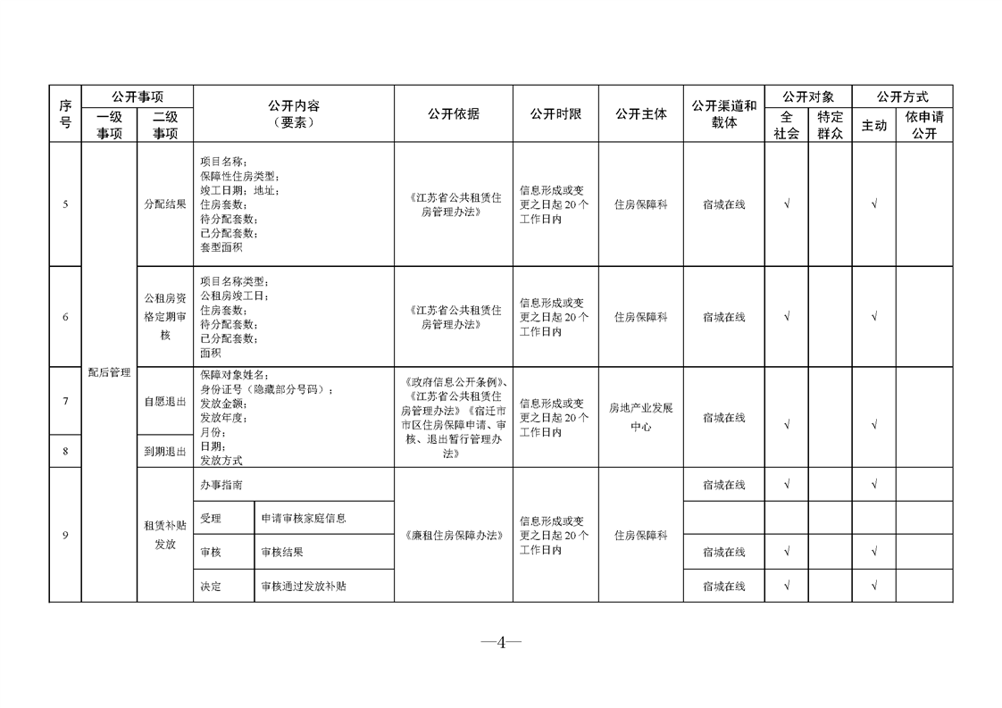 宿城區住房和城鄉建設局基層政務公開標準目錄(2022版)