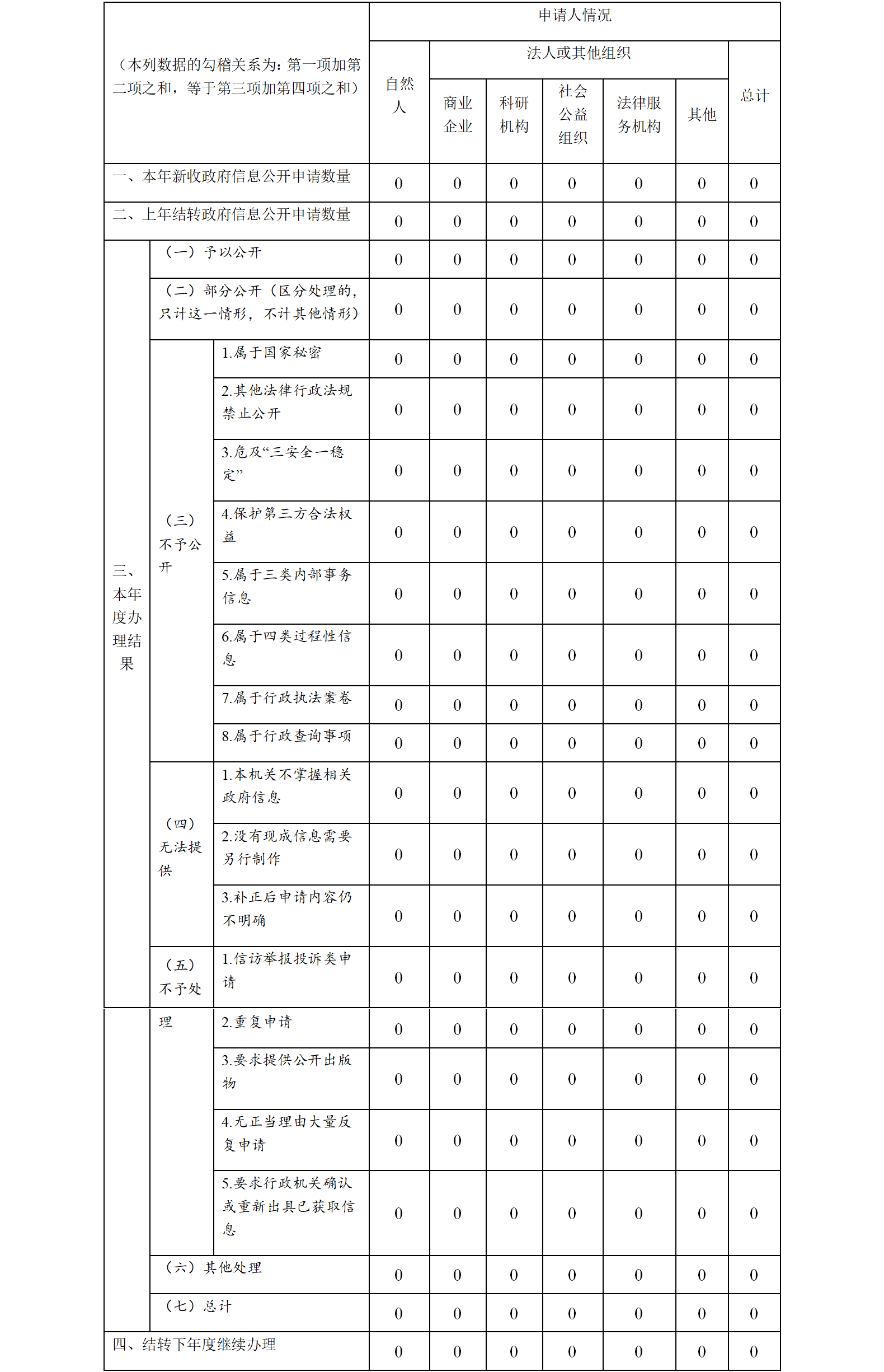 三、收到和處理政府信息公開申請情況