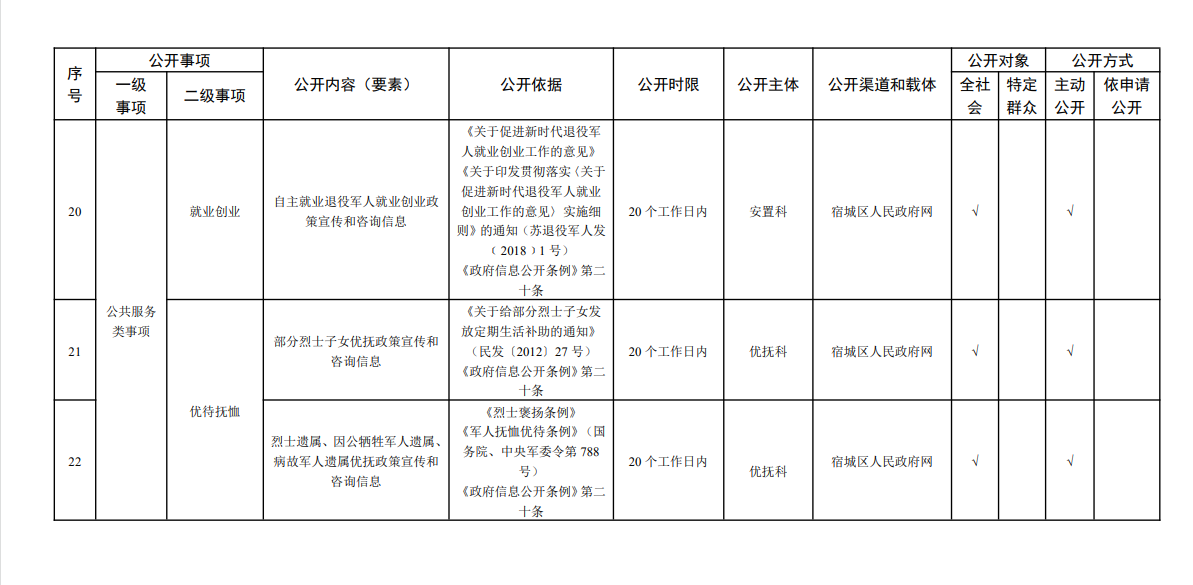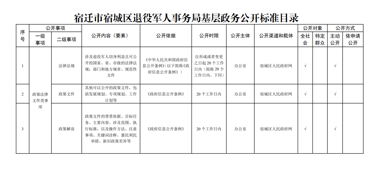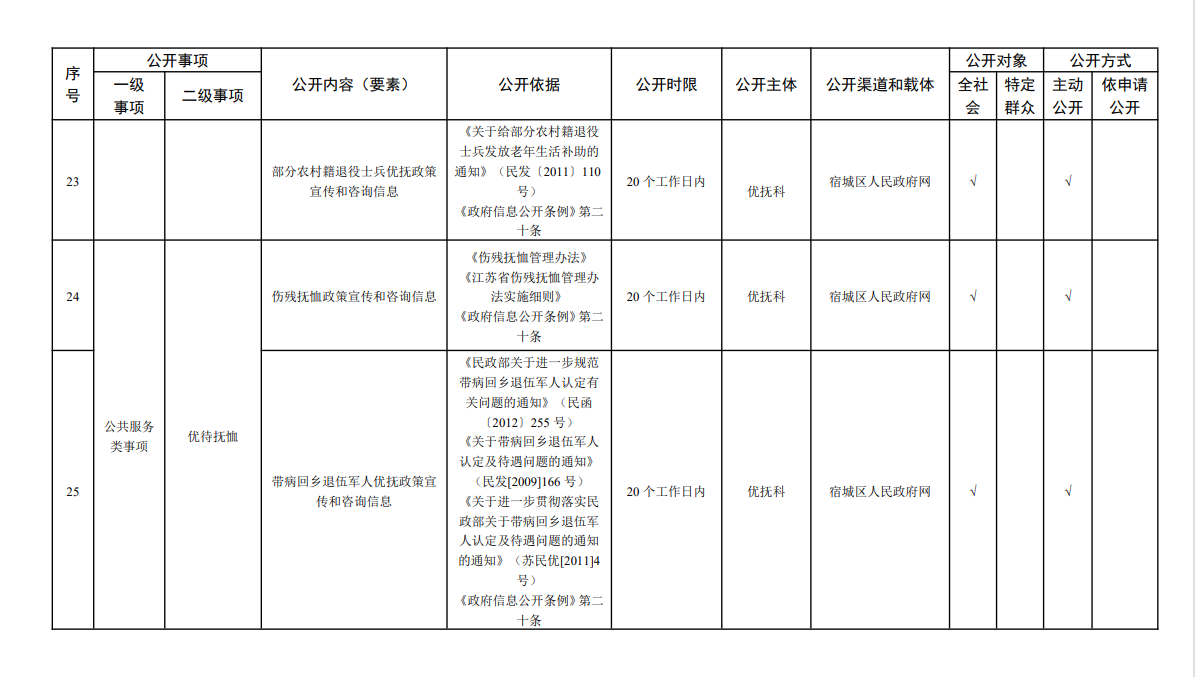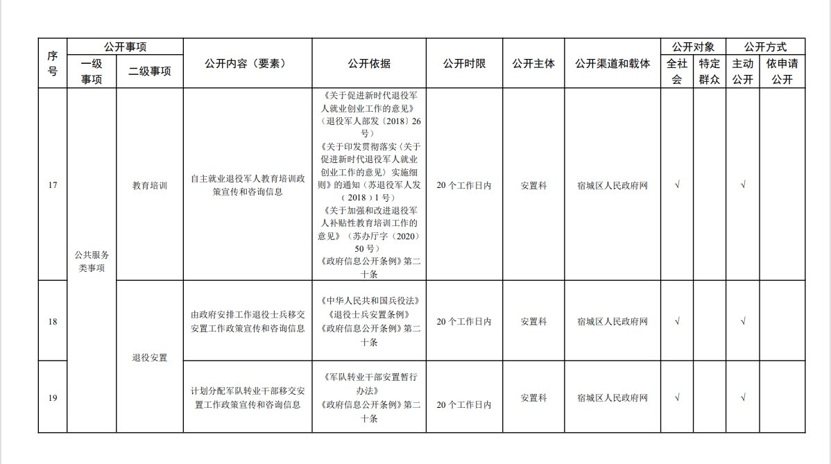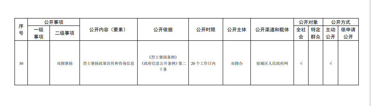 宿城區(qū)退役軍人事務(wù)局基層政務(wù)公開標(biāo)準(zhǔn)目錄(2024版)
