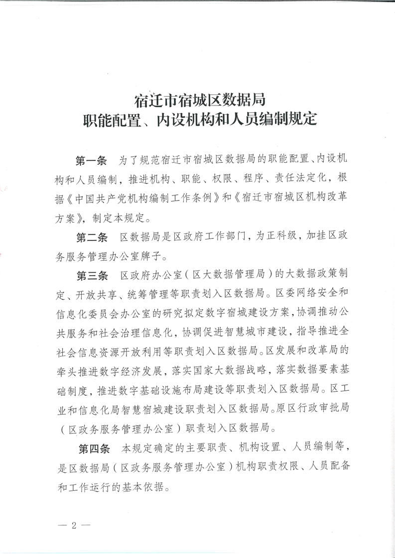 宿遷市宿城區數據局職能配置、內設機構和人員編制規定