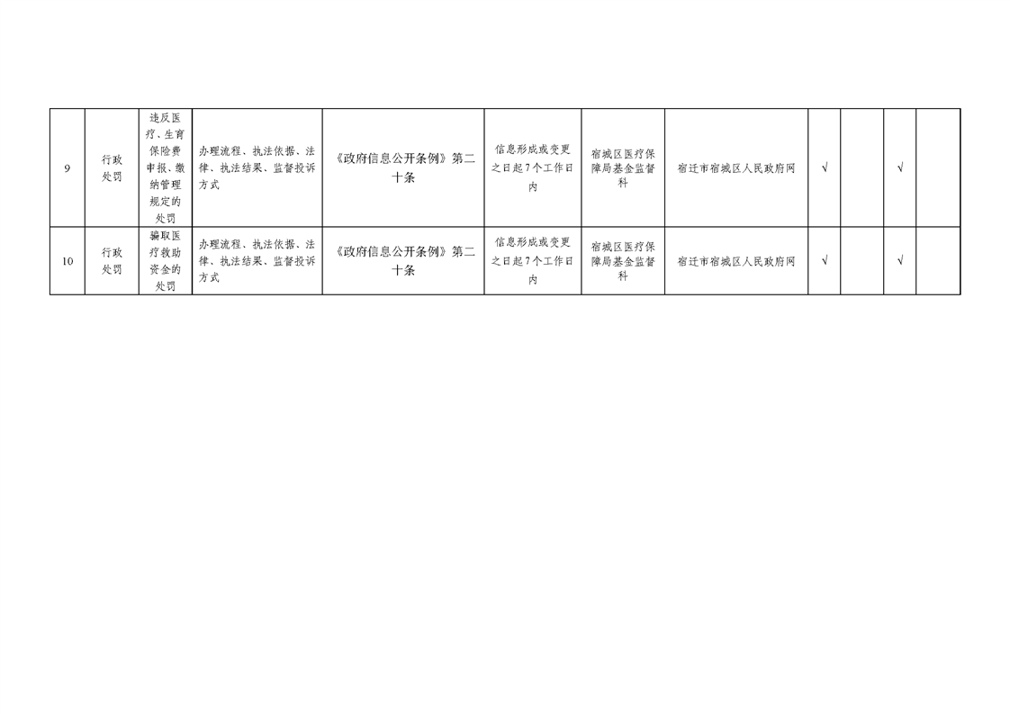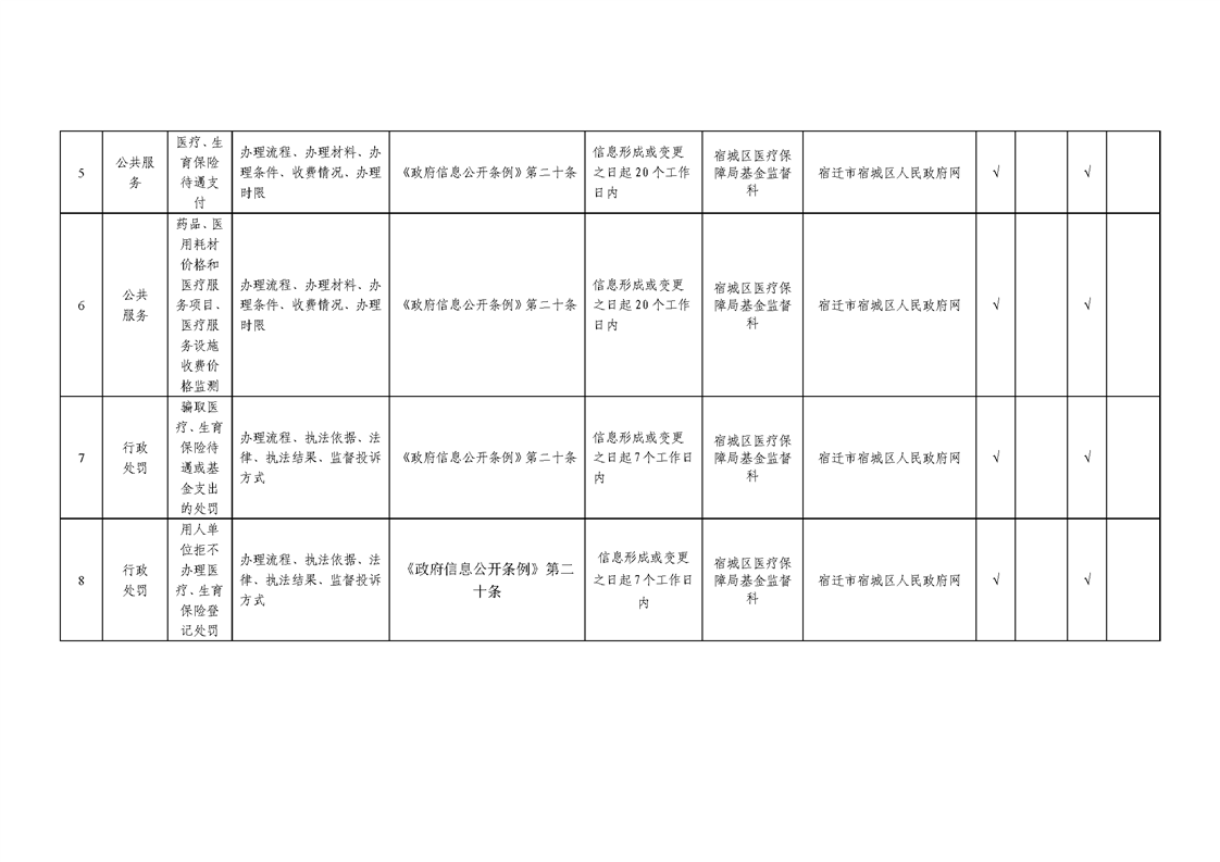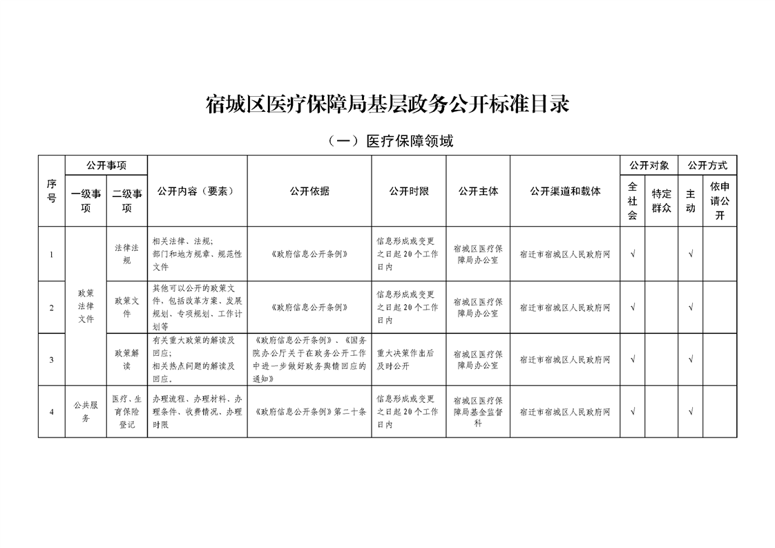 宿城區醫療保障局基層政務公開標準目錄(2023版)