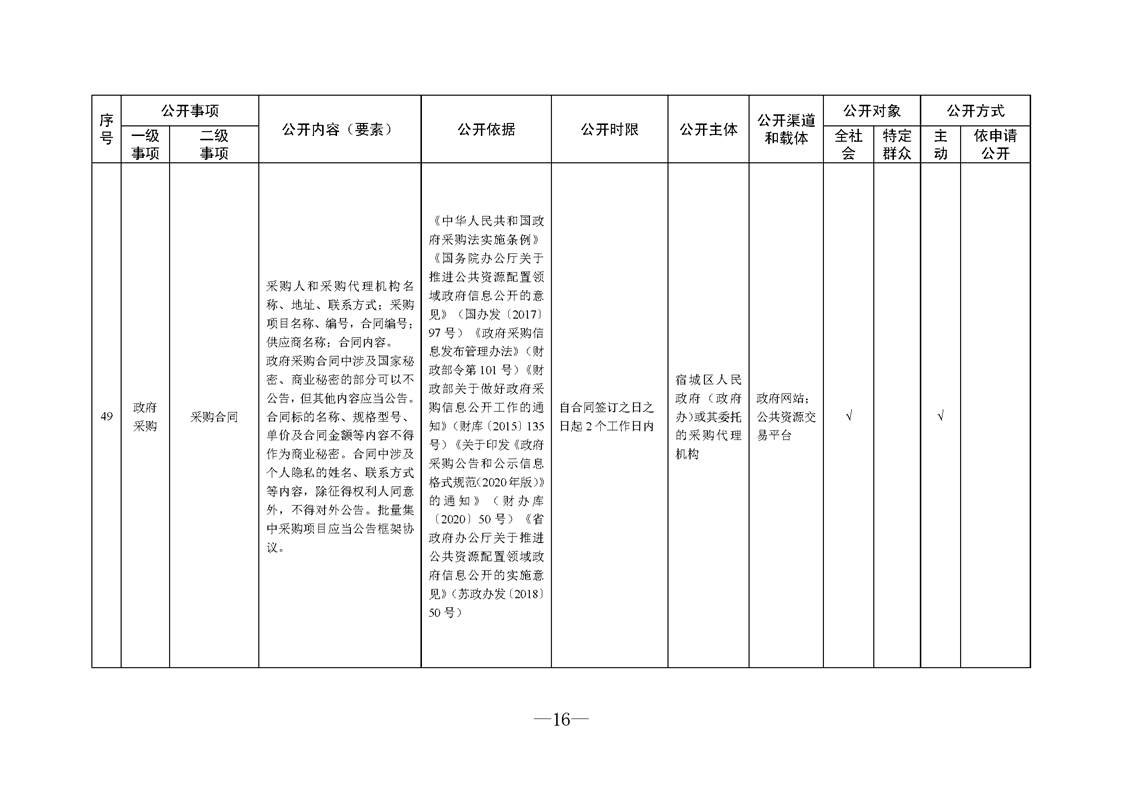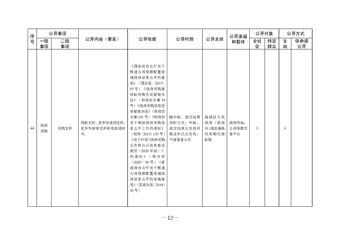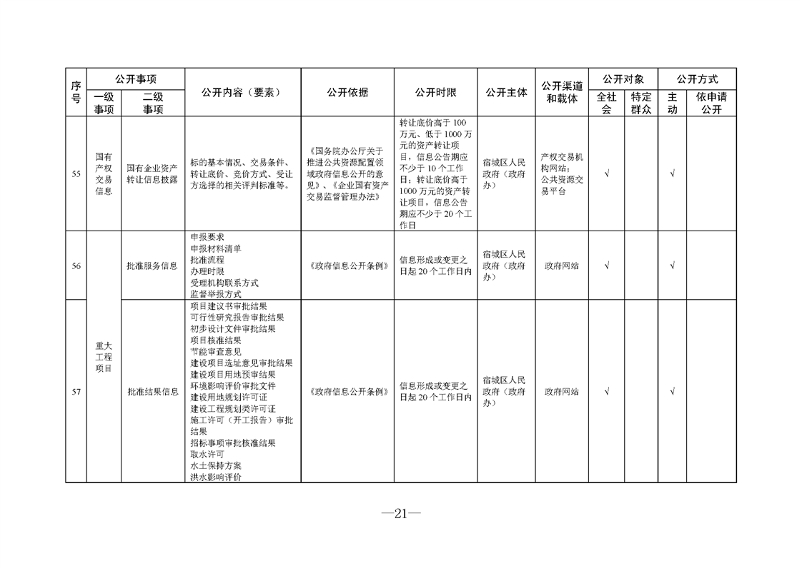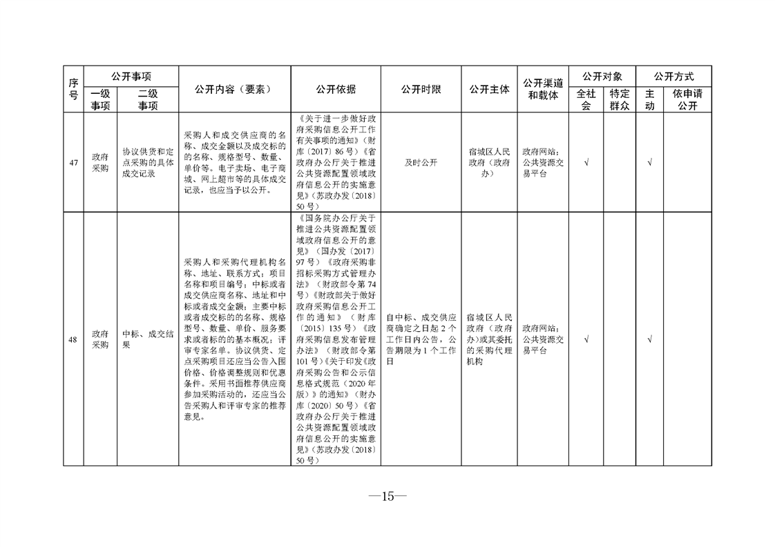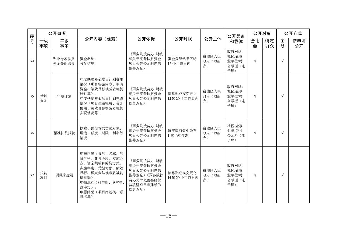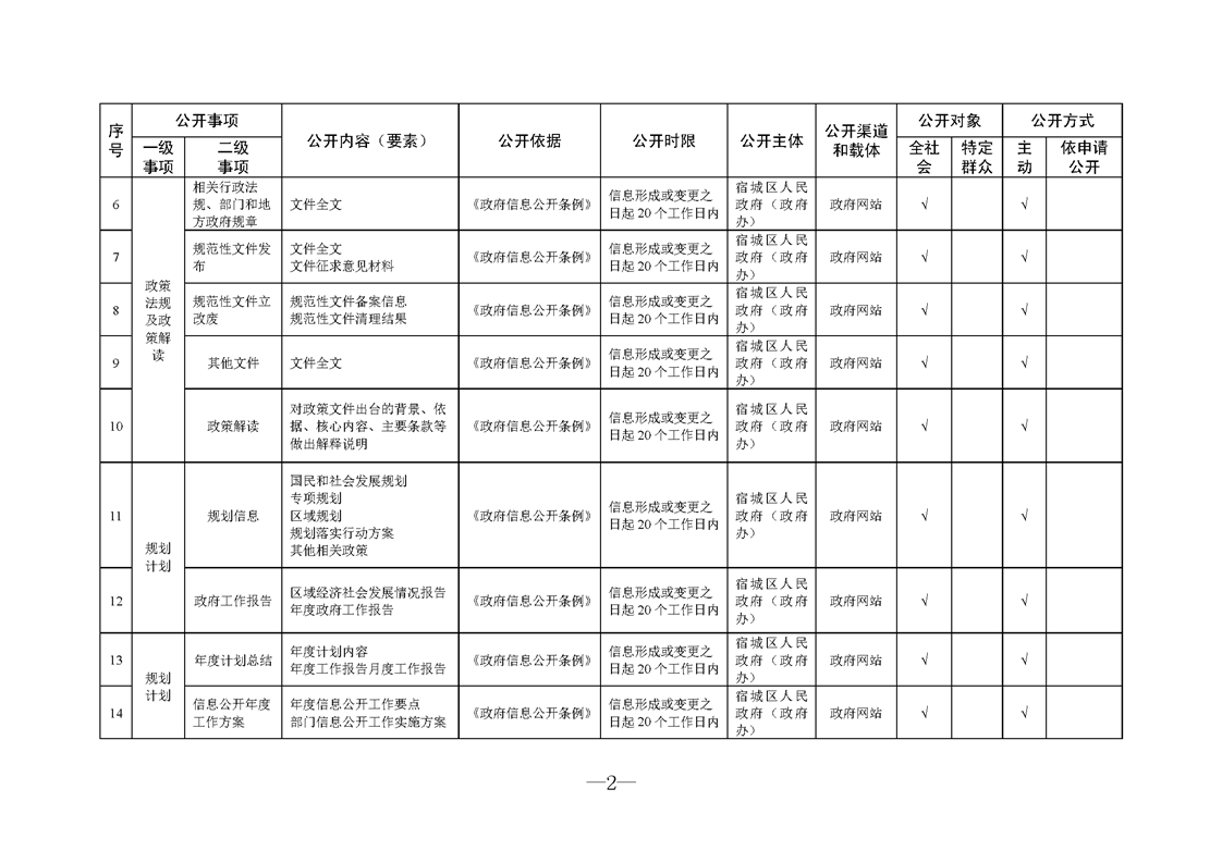 宿城區人民政府(政府辦)基層政務公開標準目錄(2024版)
