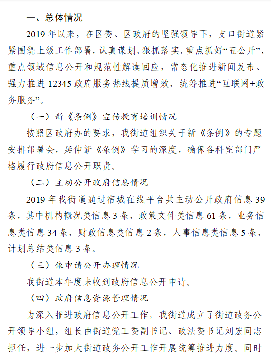宿城區(qū)支口街道辦事處2019年政府信息公開工作年度報告
